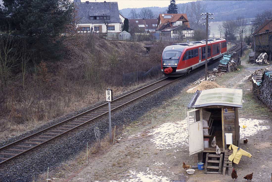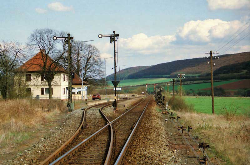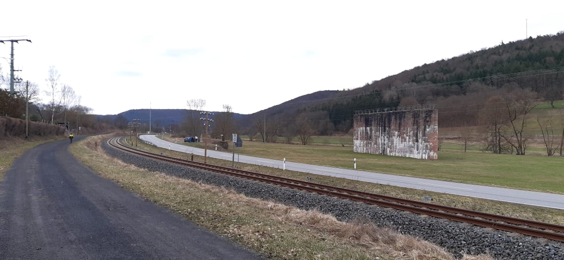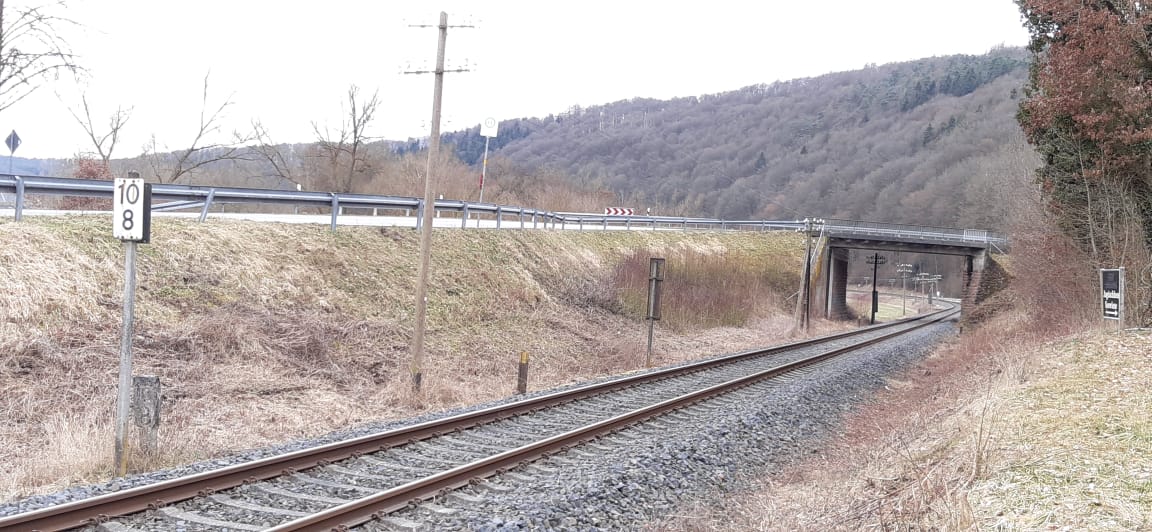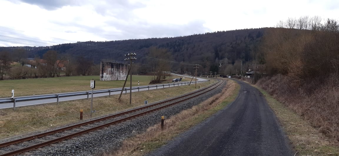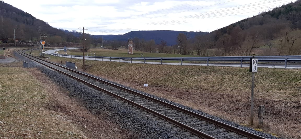 km 13,68 der Strecke Schweinfurt Hbf 0,0 - Neustadt (Saale) 38,76 - Mühlfeld 57,10 - km 57,681 - Streckenunterbrechung wegen Grenzs BRD/DDR - km 62,67 - Rentwertshausen 63,17 - Meiningen 77,90