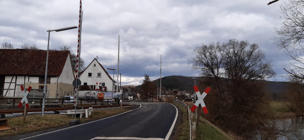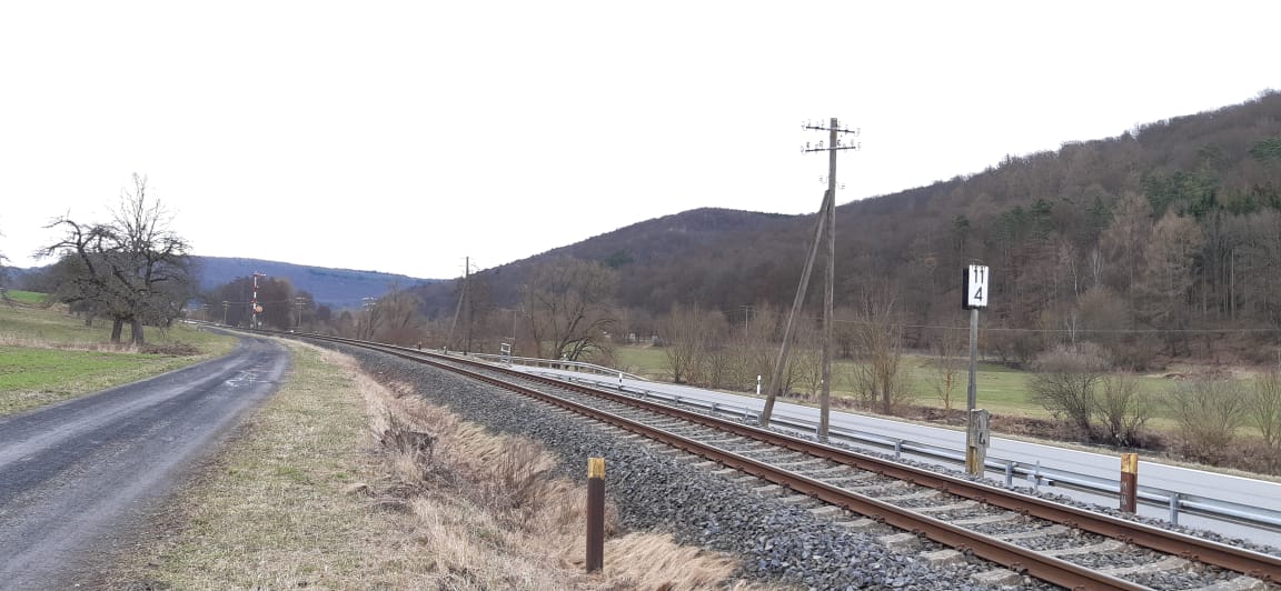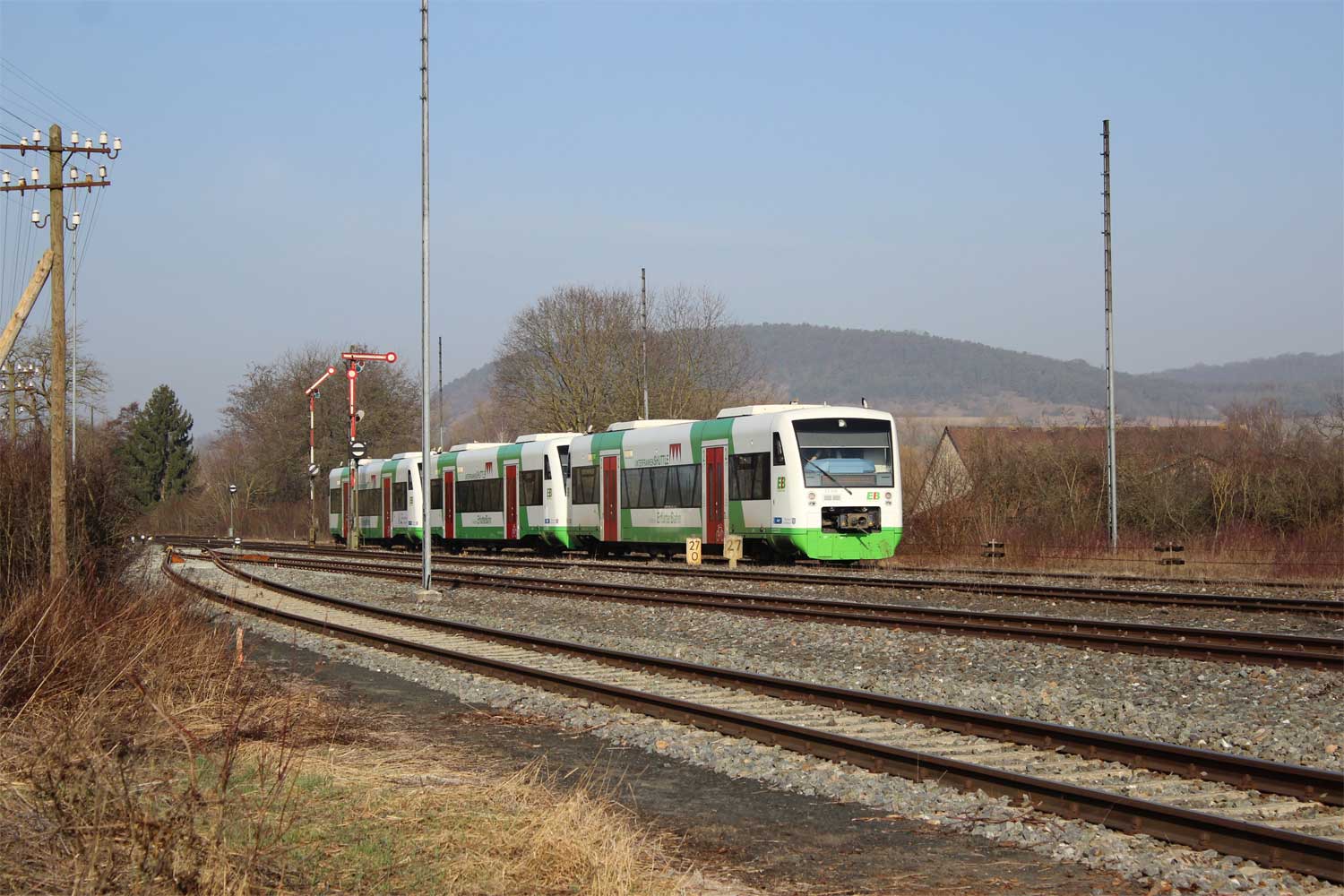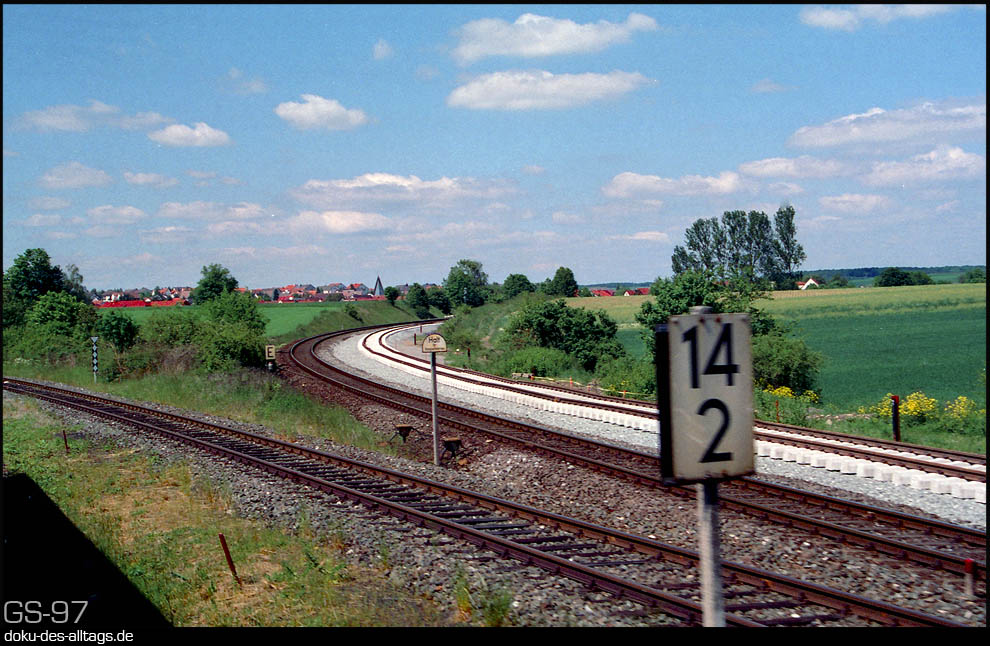 km 13,68 der Strecke Schweinfurt Hbf 0,0 - Neustadt (Saale) 38,76 - Mühlfeld 57,10 - km 57,681 - Streckenunterbrechung wegen Grenzs BRD/DDR - km 62,67 - Rentwertshausen 63,17 - Meiningen 77,90