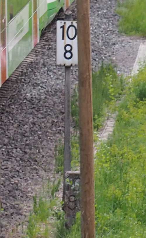 rechtes Gleis und Kilometertafel gehört zur Strecke Schweinfurt Hbf 0,0 - Neustadt (Saale) 38,77 - Meiningen 77,90