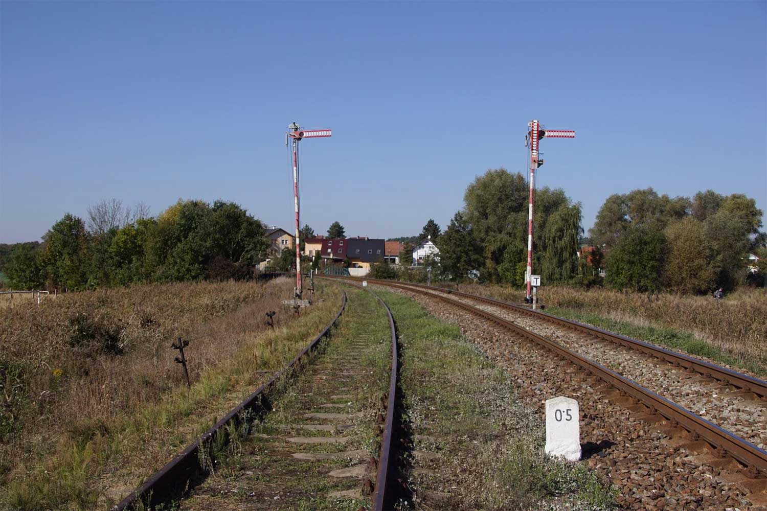 Krupá (Graupen) 0 km 65,838 der Strecke Praha-Bubny (Prag-Bubna) 0,423 - Chomutov (Komotau) 125,173 - Cheb (Eger) 237,252