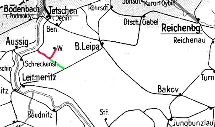 km 3,2 zwischen Velké Březno (Großpriesen) und Malé Březno-Leština (Leschtine)
