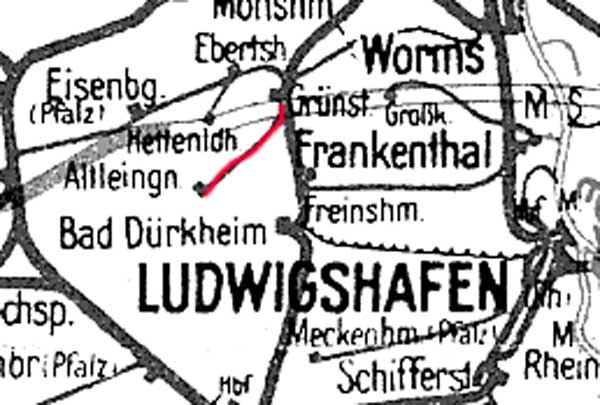 km 0,0 der Strecke Grünstadt 0,0 - Neuoffstein5,62 - Grenze Pfalz/Hessen km 6,274 = km 11,712 - Offstein 10,98 - Worms Hbf 0,0