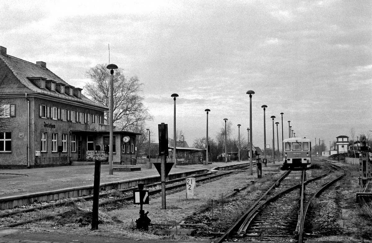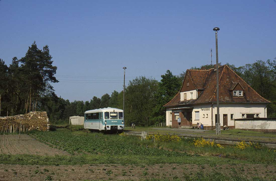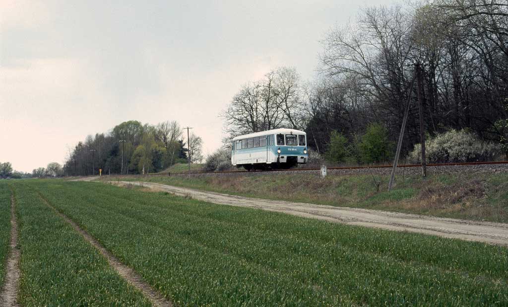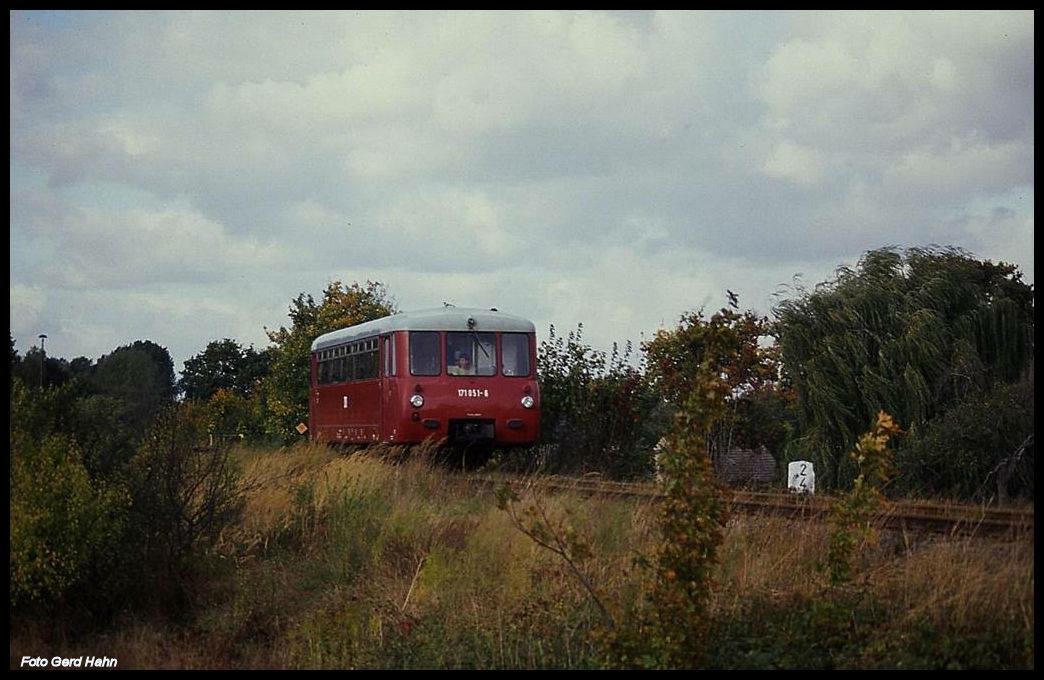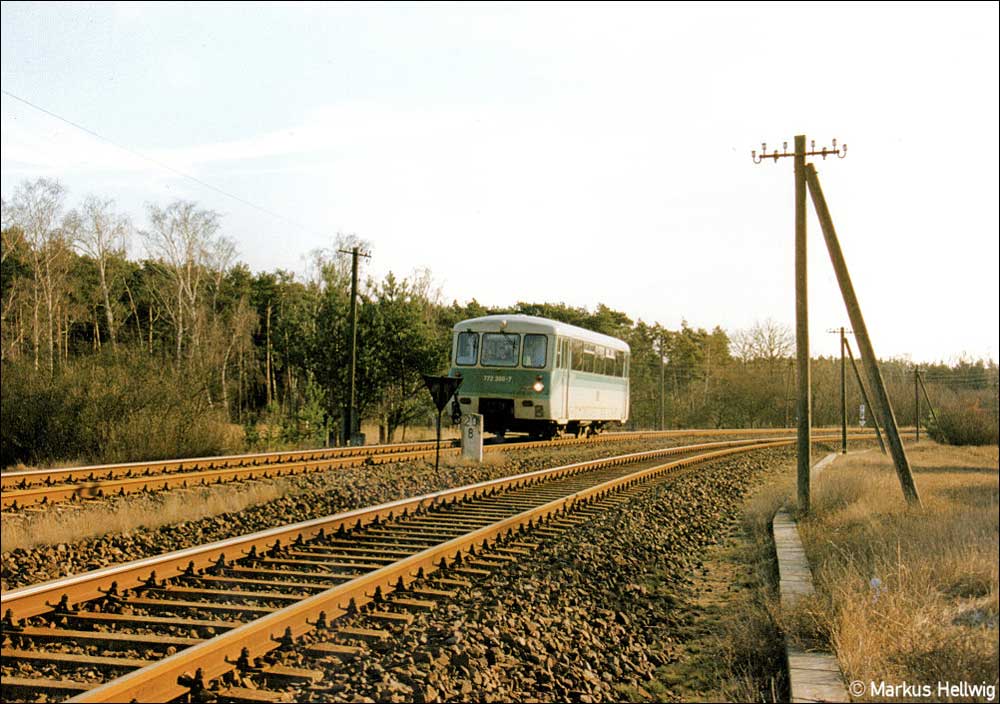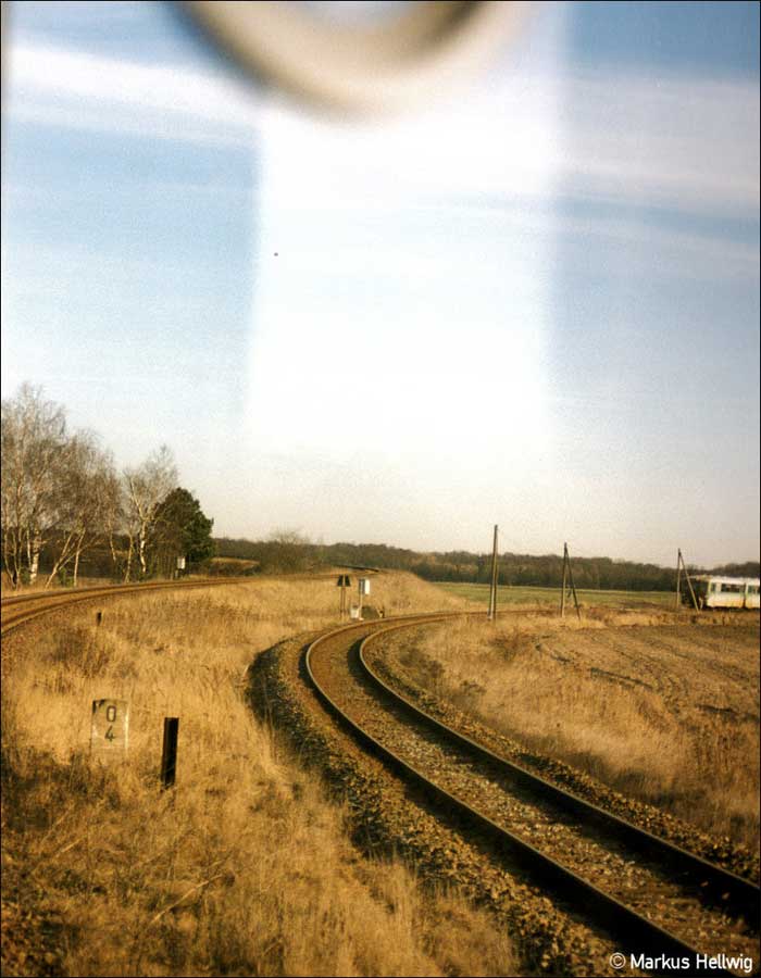Rechts der Triebwagen auf der Strecke Güsen (Kr Genthin) 0,0 - Ziesar 25,65