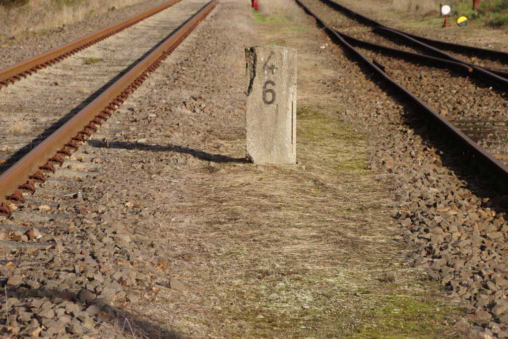 Das linke Gleis gehört zur Strecke Güsen (Kr Genthin) 0,0 - Ziesar 25,65