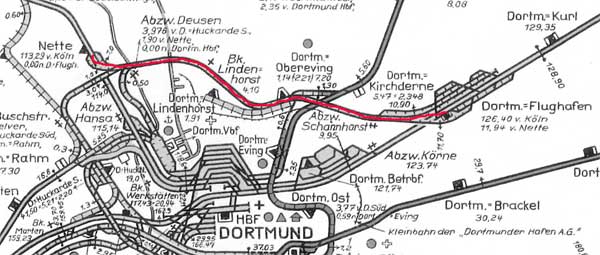 Abzw Nette 0,0 - Dortmund-Obereving 7,20 - Dortmund Flughafen 11,94 (1951)