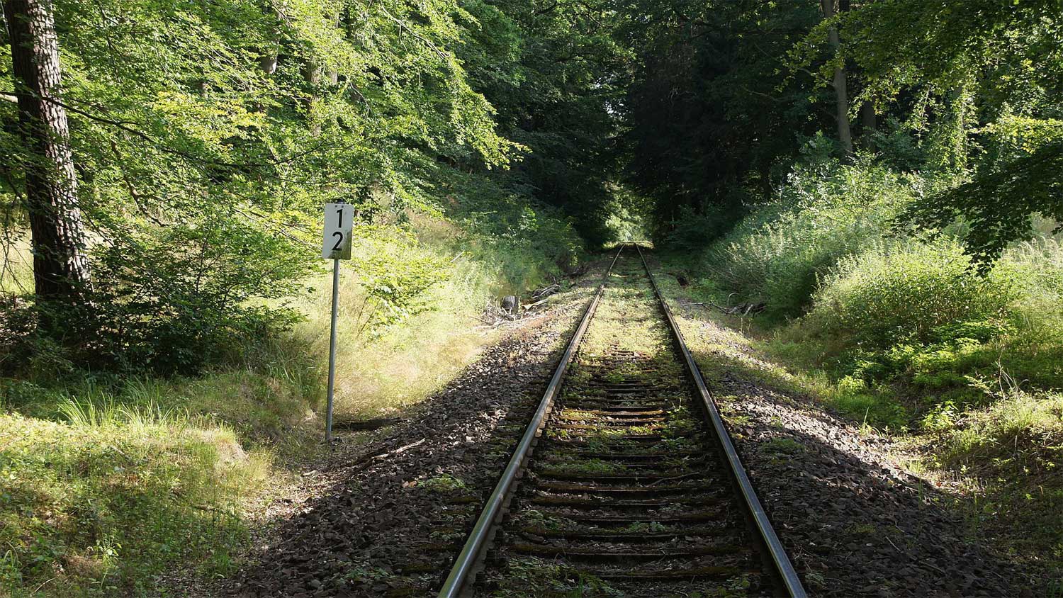 km 0,0 (Weichenspitze) am Abzw Süplingen - Blick Richtung