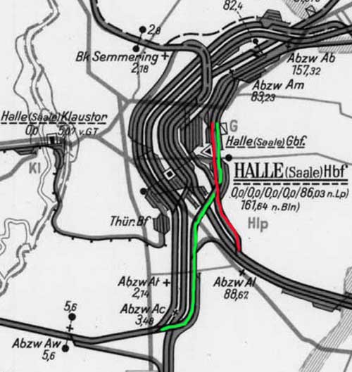 Halle (Saale) Gbf, Stw Hg 12, W 704, km 0,034 - Halle (Saale) Hbf, Abzw, Al, W 1, km 3,160 (6349)