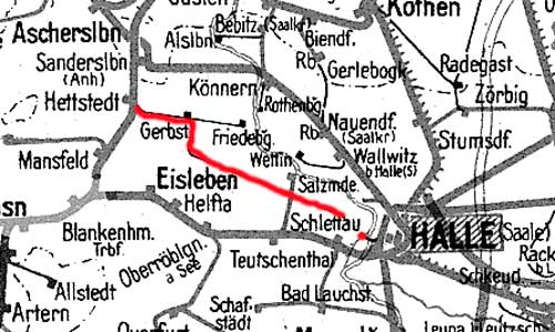 Halle-Nietleben 3,56 - Halle-Dölau 7,06 - Streckenunterbrechung - Gerbstedt - Hettstedt 44,60 (6800)