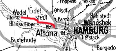 Altona Hbf 0,66 - Blankenese 9,56 - Wedel (Holst) 18,95 (1921)