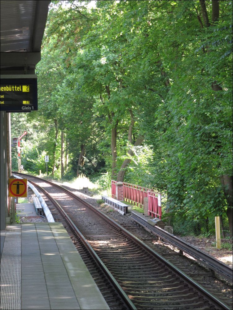km 9,5 (kommend, zwischen den Gleisen) in Blankenese - Blick Richtung Streckenende