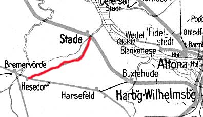 Stade | 26,5 | km 211,17 der Strecke Hannover Hbf 0,0 - Lehrte 16,13 - Celle 44,05 - Lüneburg 131,56 - Hamburg-Harburg 169,37 - Cuxhaven Stadt 273,05 mit Abzweig nach Cuxhaven Hafen (Amerikahafen) 274,23 |