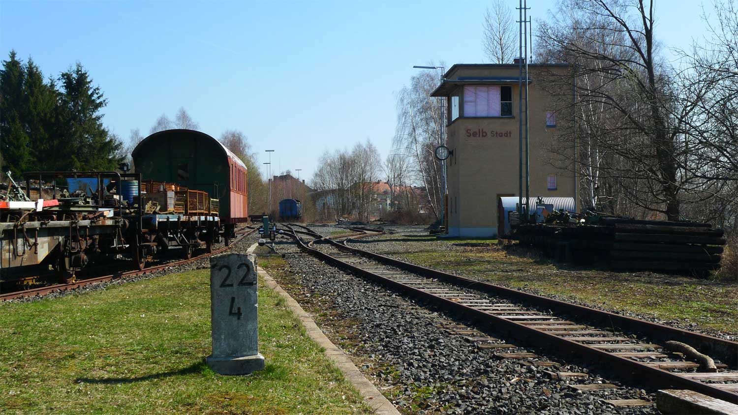 Selb Stadt | = | km 0,0 der Strecke Selb Stadt 0,0 - Ladestelle Ludwigsmühle 1,6 |
