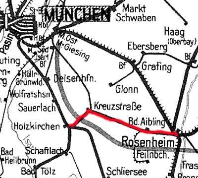 km 0,0 der Strecke (Rosenheim 0,0) - Abzw Landl 3,33 - Rohrdorf (Oberbay) 10,42 |