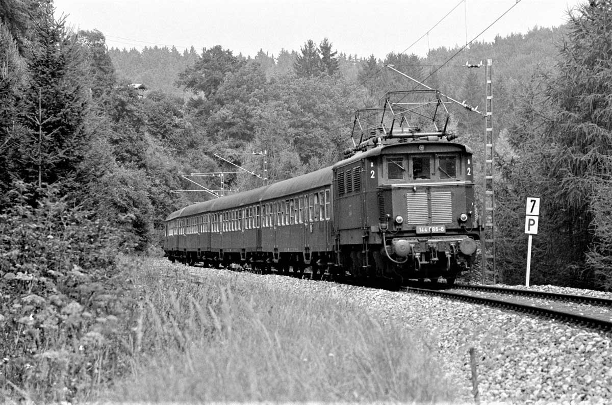 144 188 (Krauß-Maffei-SSW/1936) vom Bw Rosenheim mit N 3172 (Rosenheim 17.06 Uhr – Holzkirchen 17.53 Uhr).