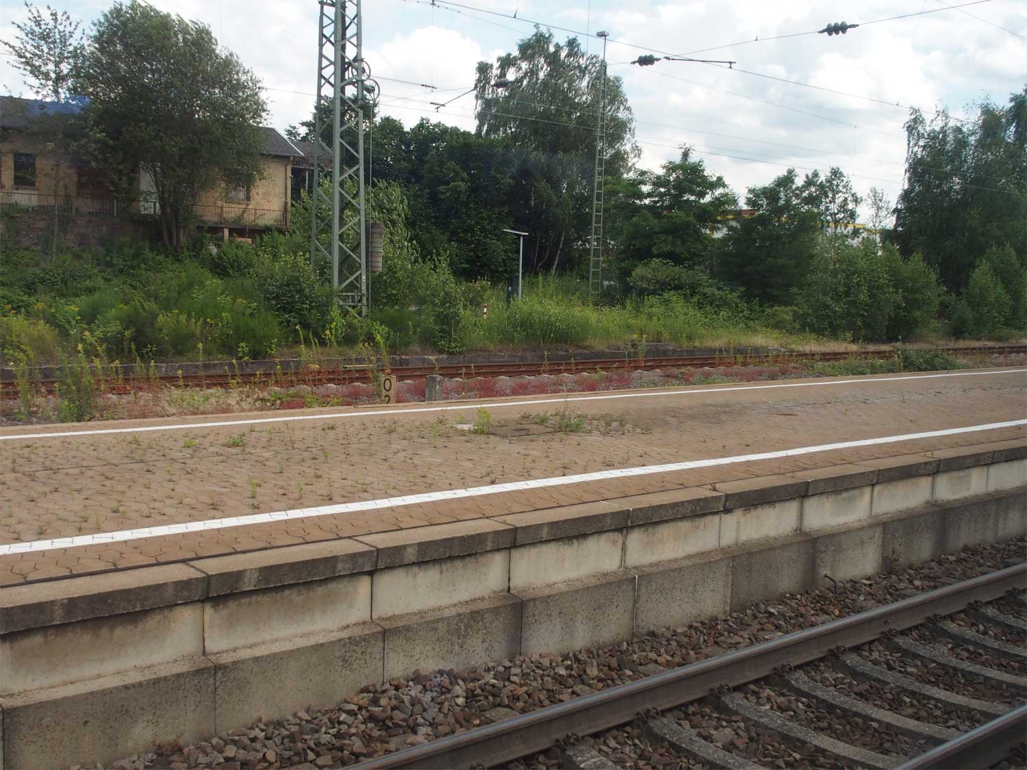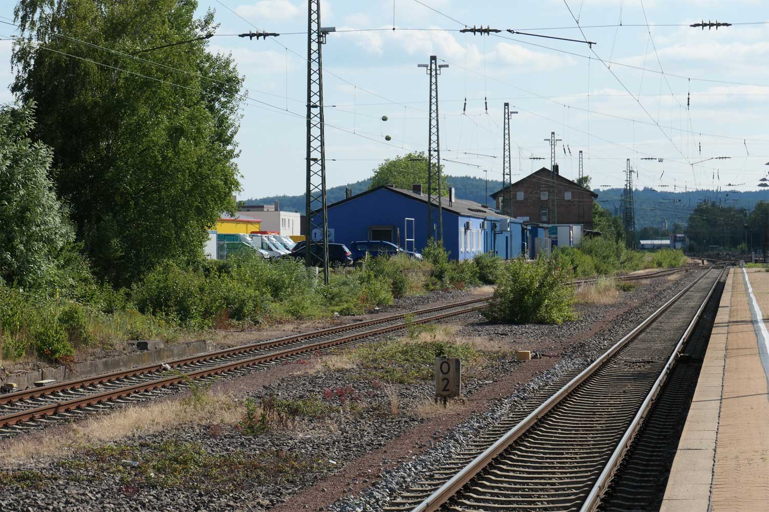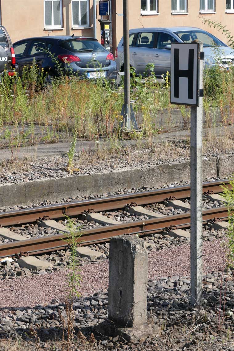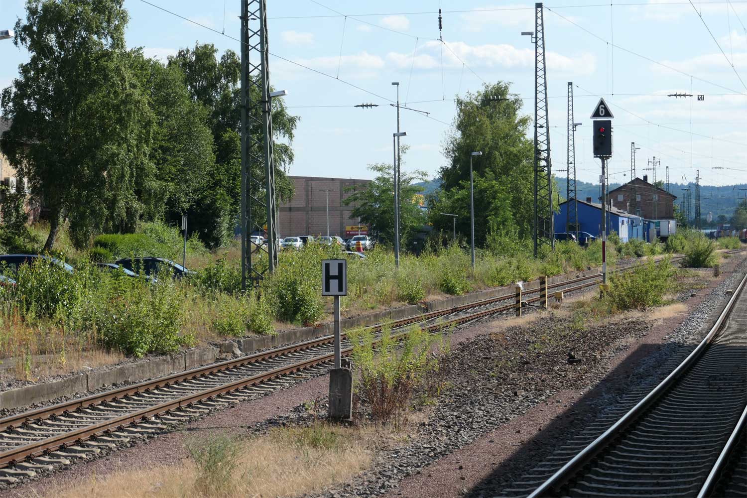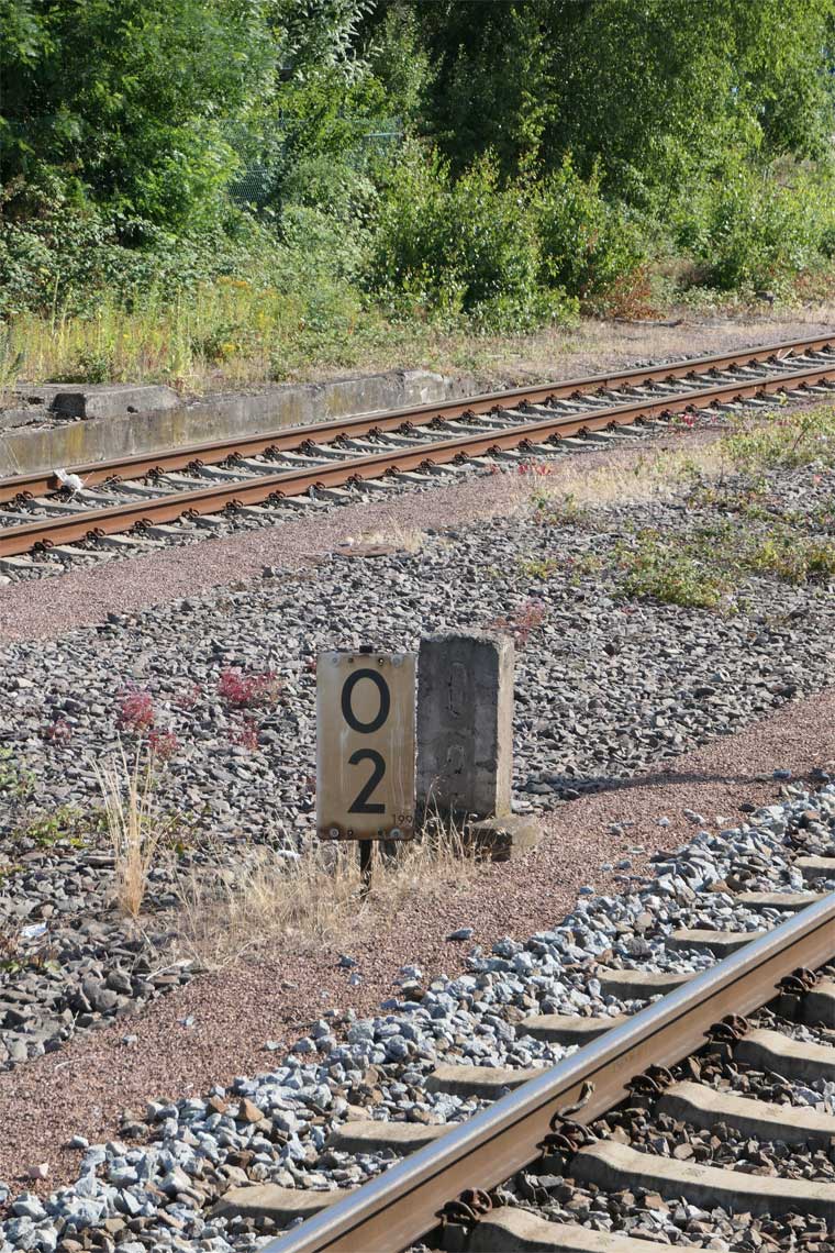 km 0,2 (Tafel und Stein) in Homburg (Saar) Hbf - Blick Richtung Einöd