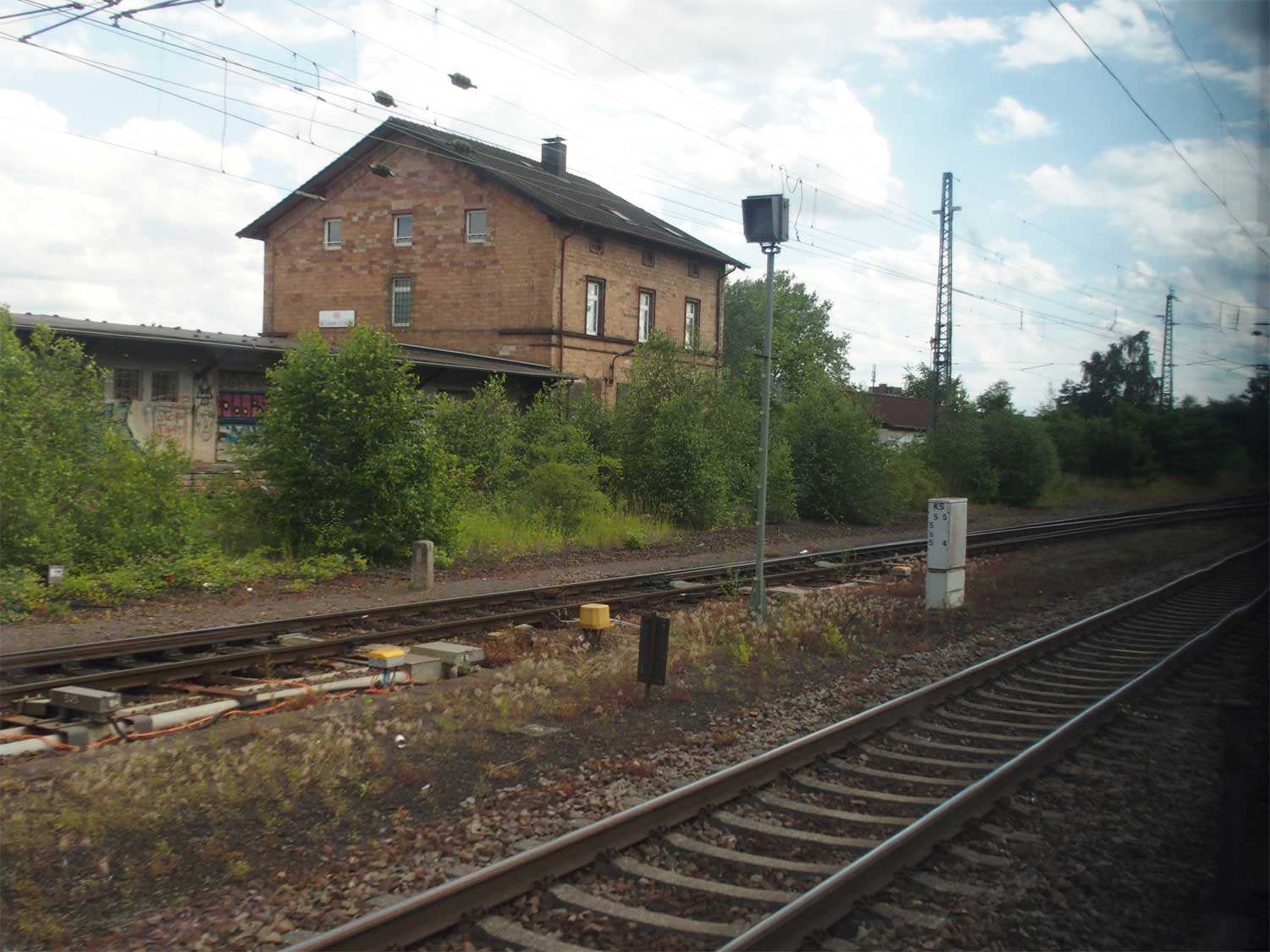 km 8,37 der Strecke Homburg (Saar) 8,37 - Kaiserslautern Hbf 43,70 - Neustadt (Weinstr) Hbf 77,21 - Ludwigshafen (Rhein) Hbf 106,535 (kommend)/105,613 (gehend) - Landesgrenze Pfalz/Hessen km 125,10 = km 0,0 - Worms 3,21 - Mainz Hbf 49,09