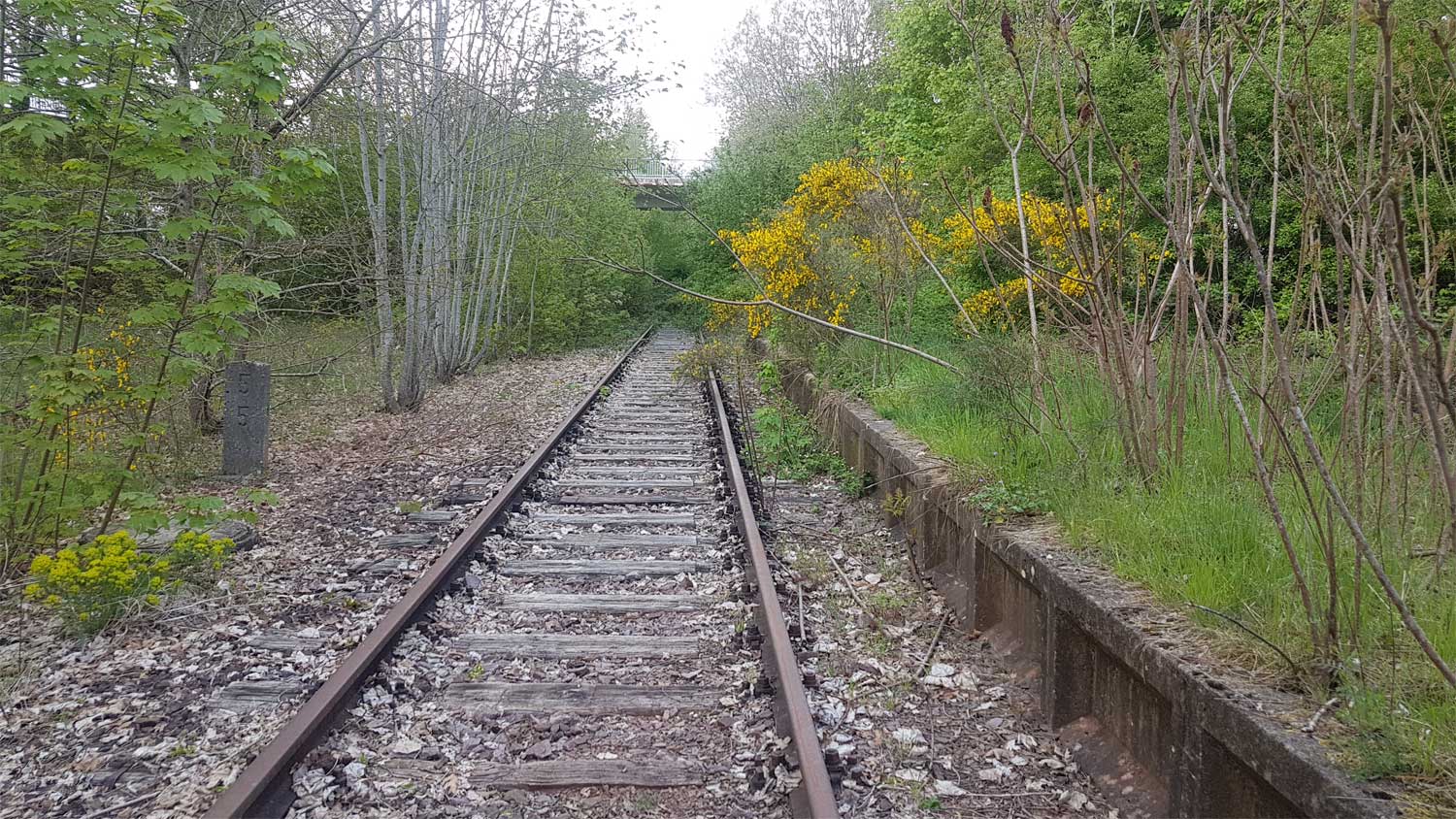 Rechts das Gleis dieser Strecke zwischen Bierbach und Blieskastel-Lautzkirchen