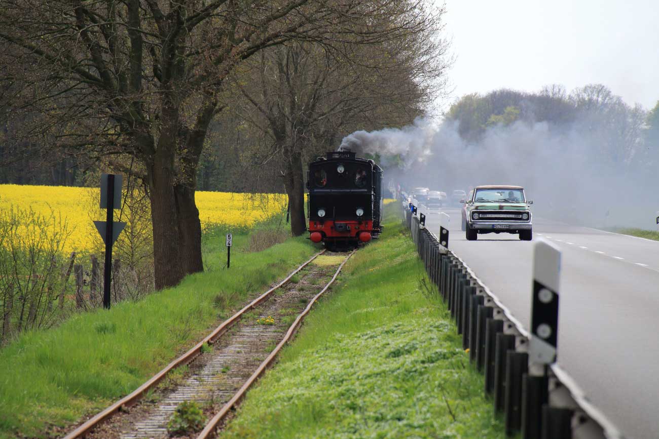 km 3,2 zwischen Vilser Holz und Heiligenberg - Gast-Dampflok Nr. "Bieberlies" (Henschel 19979/1923)
