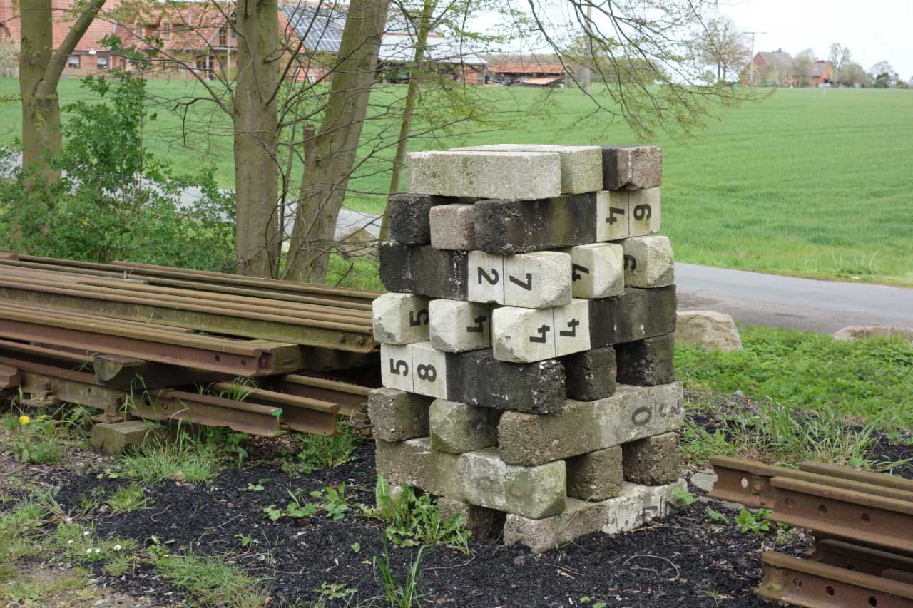 Stapel mit Kilometersteinen in Heiligenberg - umgestapelt