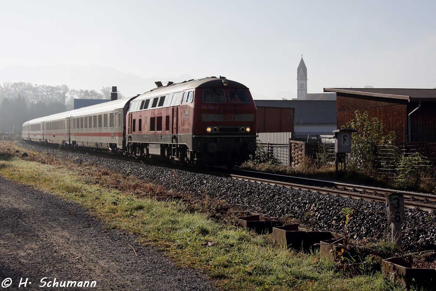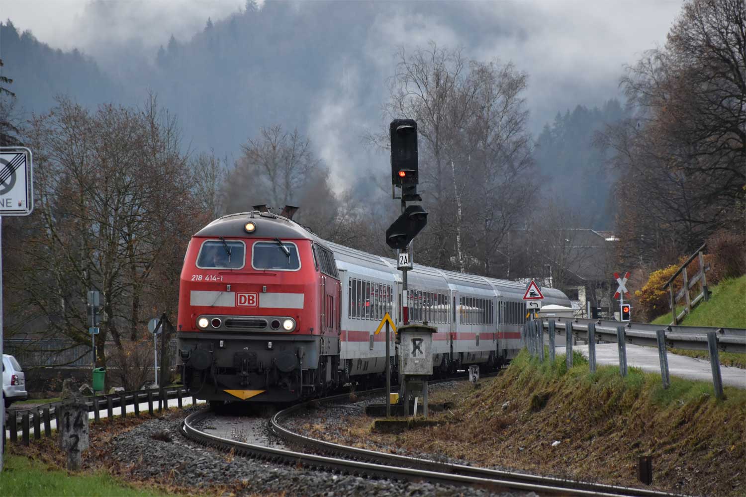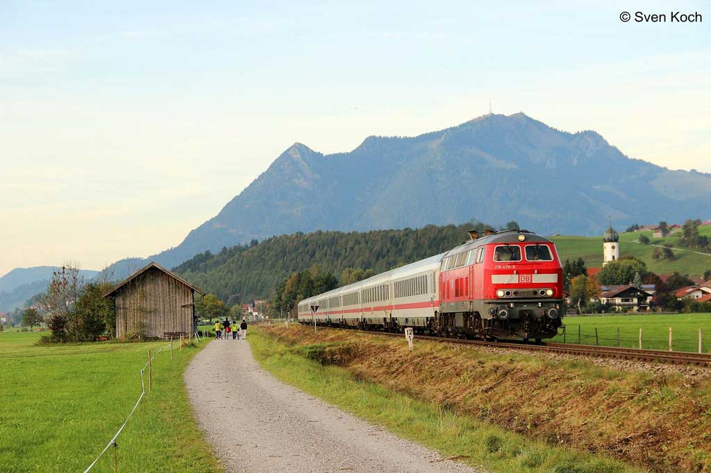 km 3,8 zwischen Immenstadt und Blaichach (Allgäu) - 218 326 mit IC 2084 (Oberstdorf - Augsburg)
