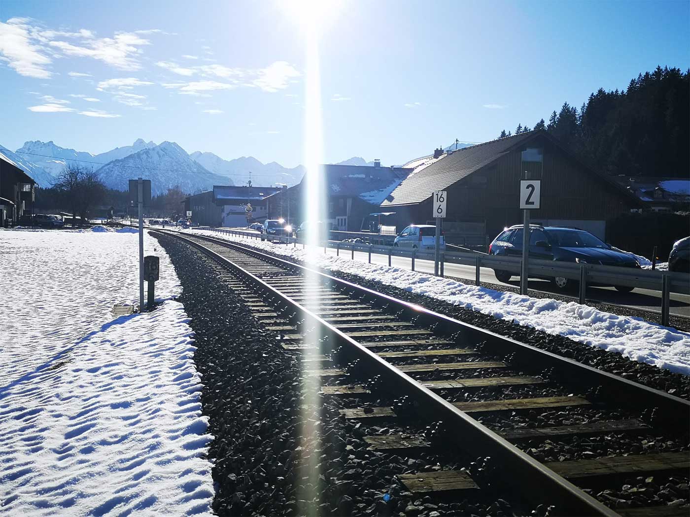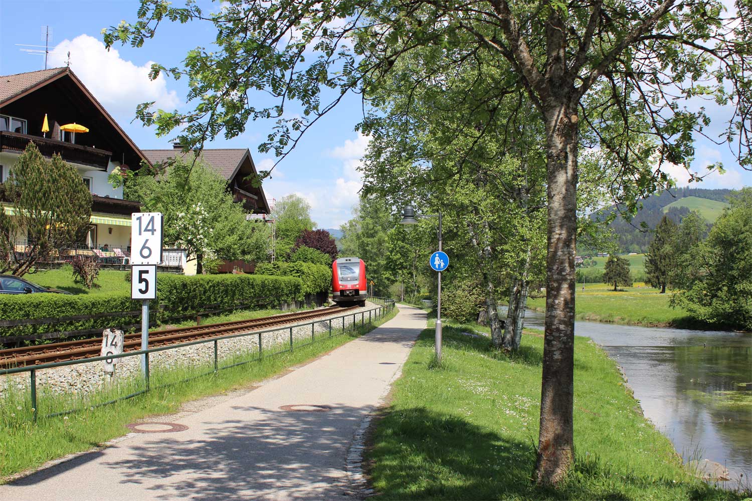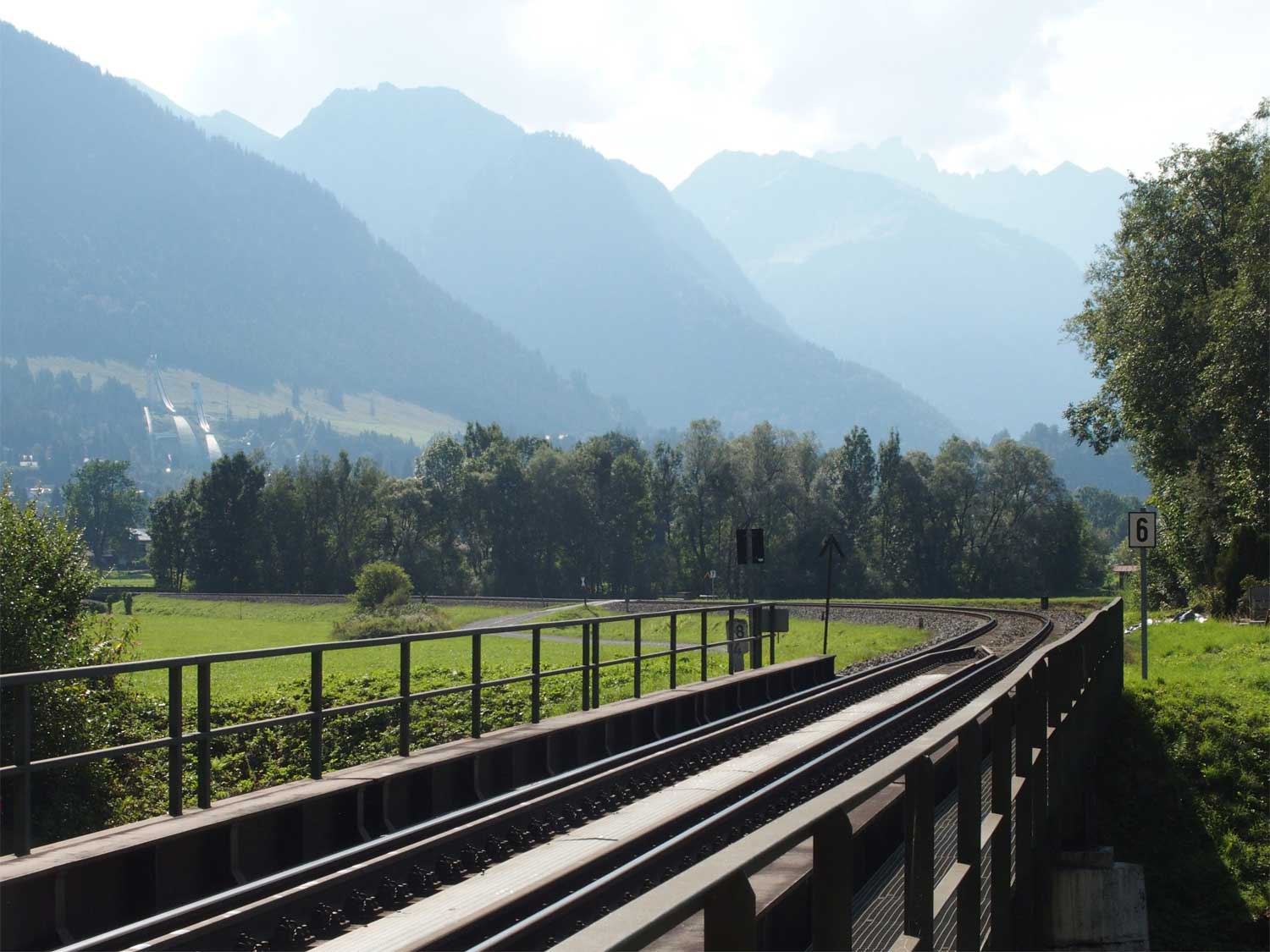 km 14,2 und km 14,3 in Fischen - Blick Richtung Oberstdorf