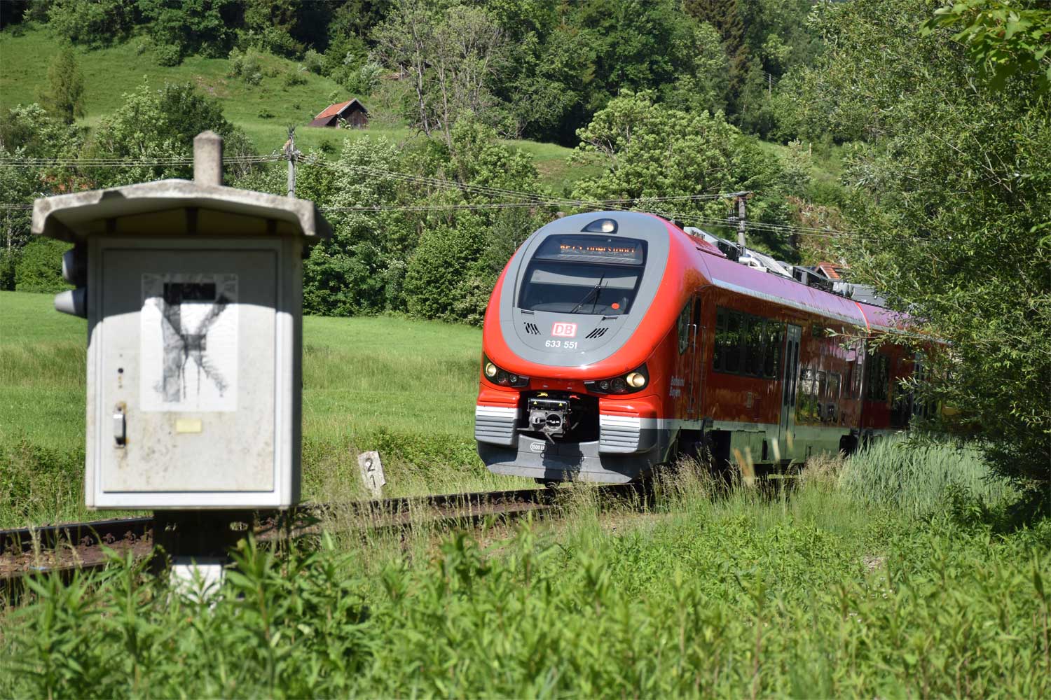 km 2,1 zwischen Immenstadt und Blaichach (Allgäu) - 633 551 und 633 xxx als RE 3691
