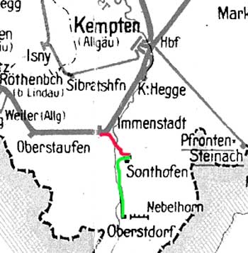 Immenstadt 0,00 km 84,49 der Strecke Buchloe 0,0 - Kempten (Allg) Hbf (alt 62,833) neu 62,46 - Lindau 152,994