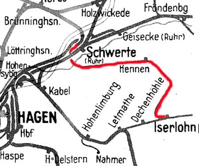 Iserlohn | 0,0 | km 5,50 der Strecke Letmathe 0,0 - Iserlohn 5,50 - Hemer 13,67 - Menden (Kr Iserlohn) 20,38 - Fröndenberg 25,02 |
