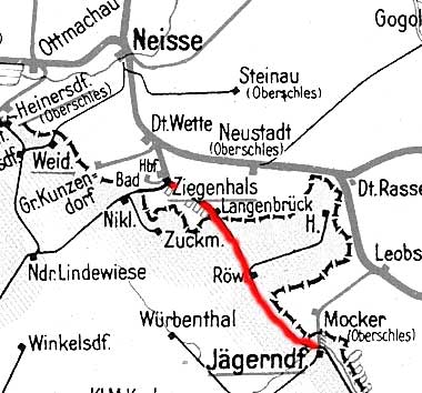 Jägerndorf -0,69 - Grenze Sudetengau/Schlesien 25,69 - Ziegenhals Hbf 36,87 (1943)