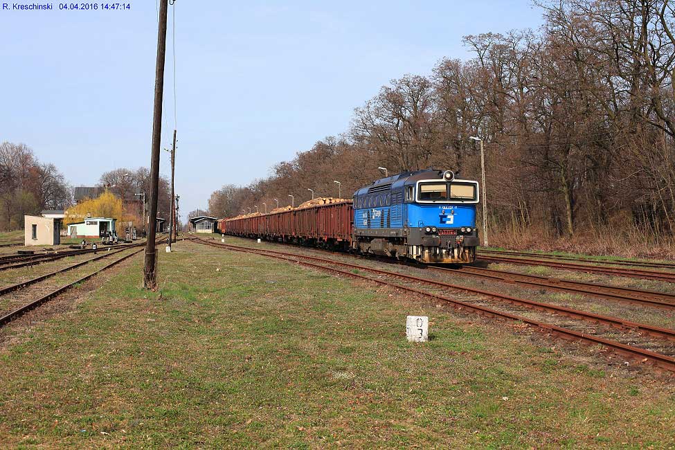 Links km 0,0 der Strecke Krnov (Jägerndorf) -0,779 - Jindřichov ve Slezsku (Hennersdorf) 21,645 - Grenze Tschechien/Polen 25,694 = km 11,225 - Głuchołazy (Ziegenhals Hbf) 0,0