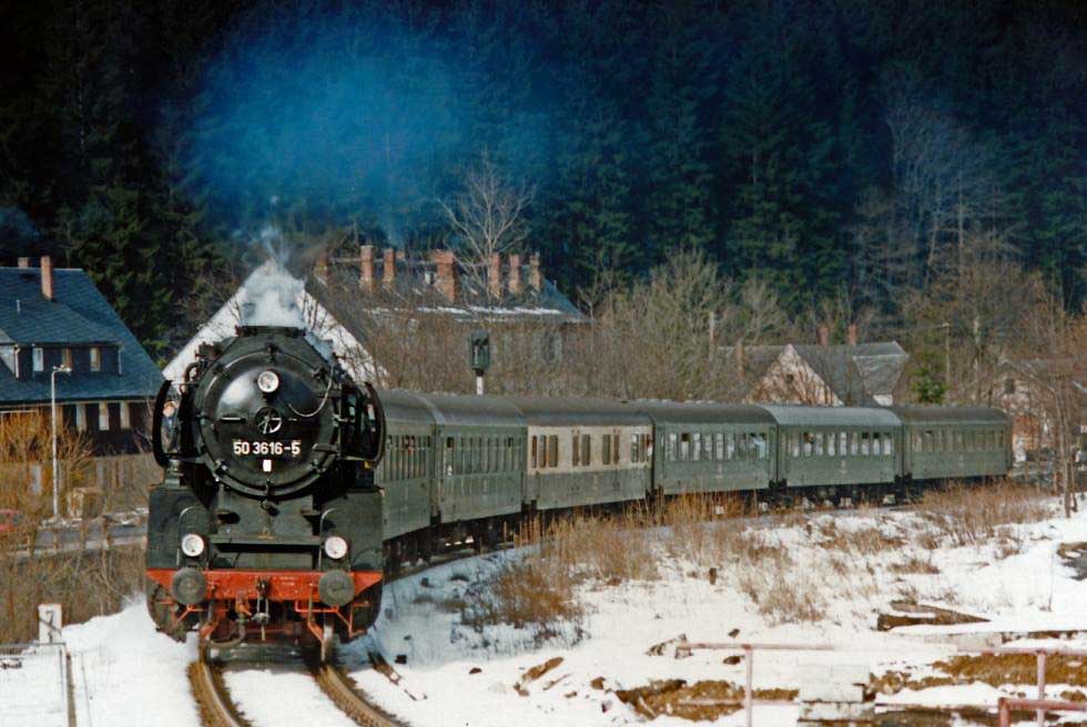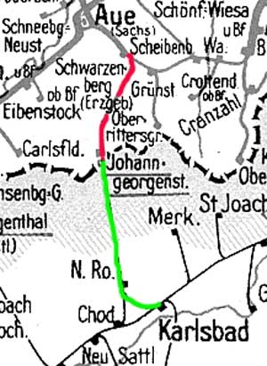 Infolge des Uranbergbaus durch die WISMUT in den Jahren 1946 bis 1964 wurde die Strecke zwischen Erlabrunn und Breitenbrunn sowie zwischen Erla und Schwarzenberg komplett neu trassiert und auch der Tunnel bei Schwarzenberg wurde neu gebaut. |