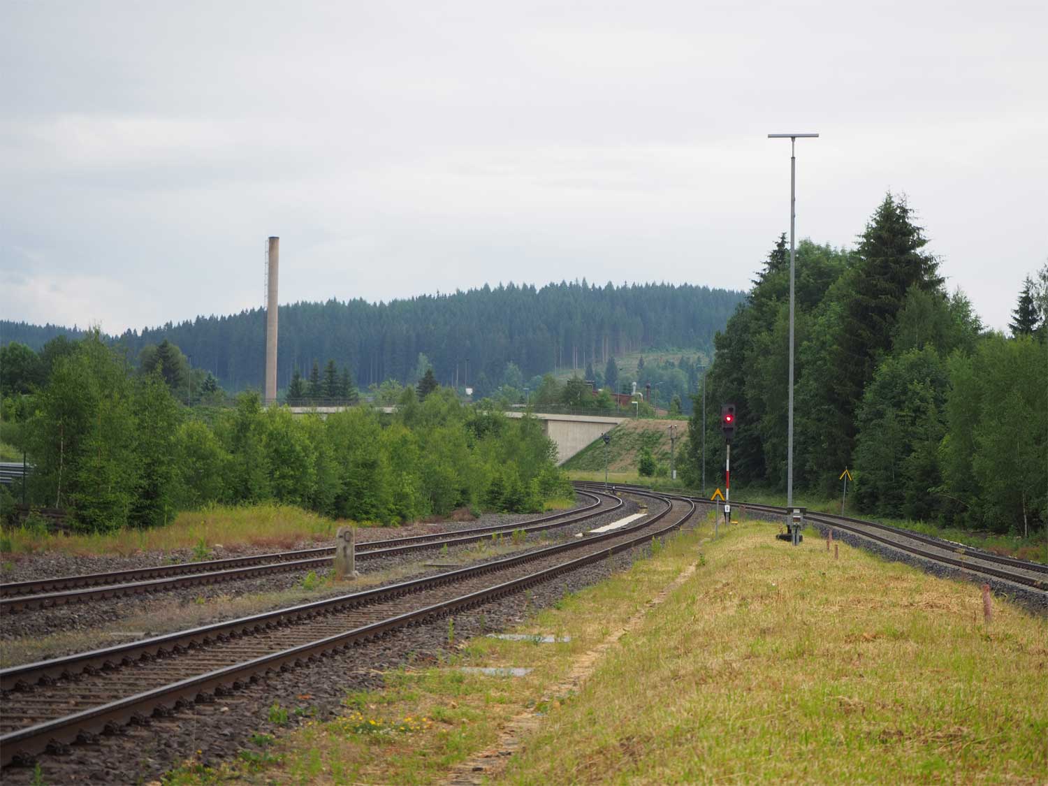 km 0,14 der Strecke Schwarzenberg (Erzgeb) 0,14 - Aue (Sachs) 10,60 - Zwickau Hbf 37,97 (SZ) |