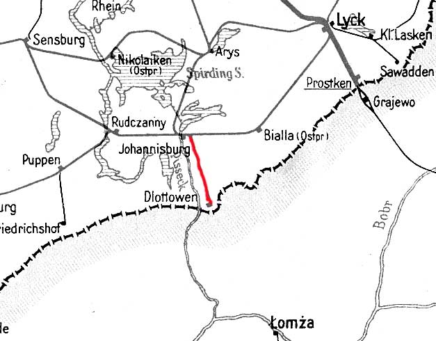 Abzw Johannisburg Betriebsbf 2,41 km 103,98 der Strecke Allenstein Hbf 0,0 - Ortelsburg 44,93 - Johannisburg 101,94 - Lyck 157,42