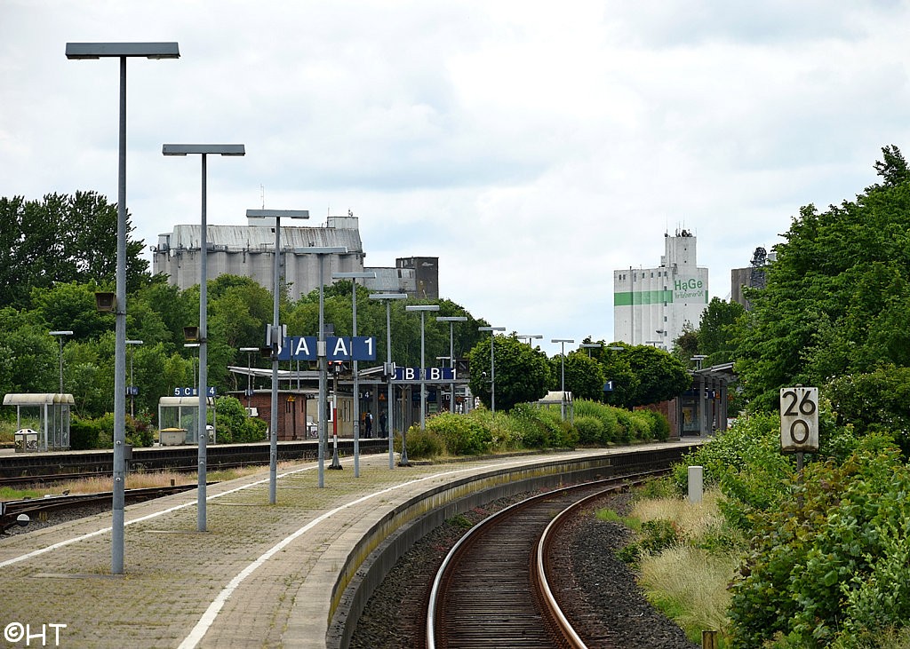 Husum 26,29 km 158,26 der Strecke Hamburg-Altona 0,74 - Elmshorn 30,70 - Itzehoe 73,58 - Heide (Holst) 124,48 - Husum 158,26 - Niebüll 198,45 - Westerland (Sylt) 237,61