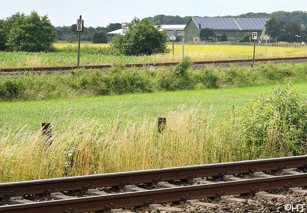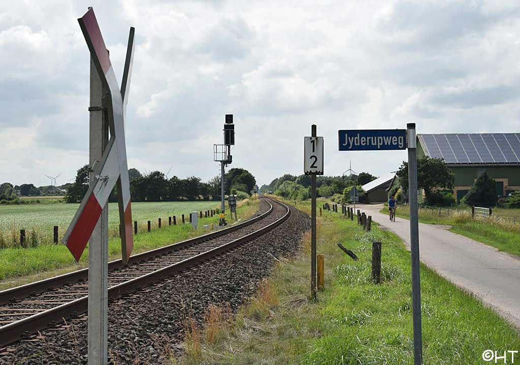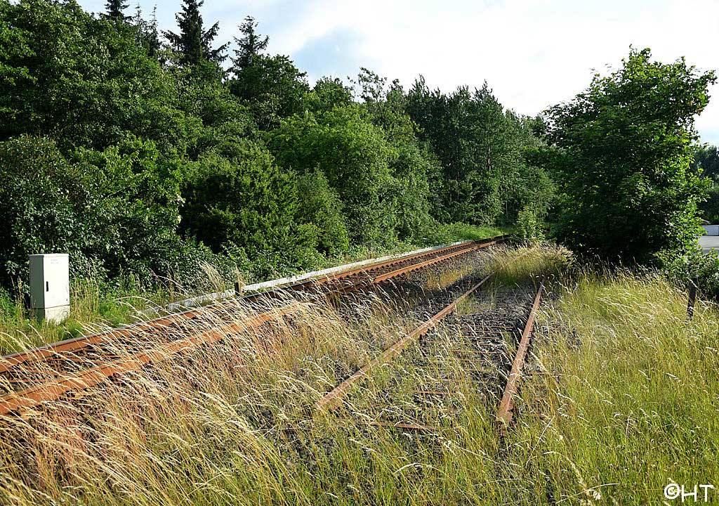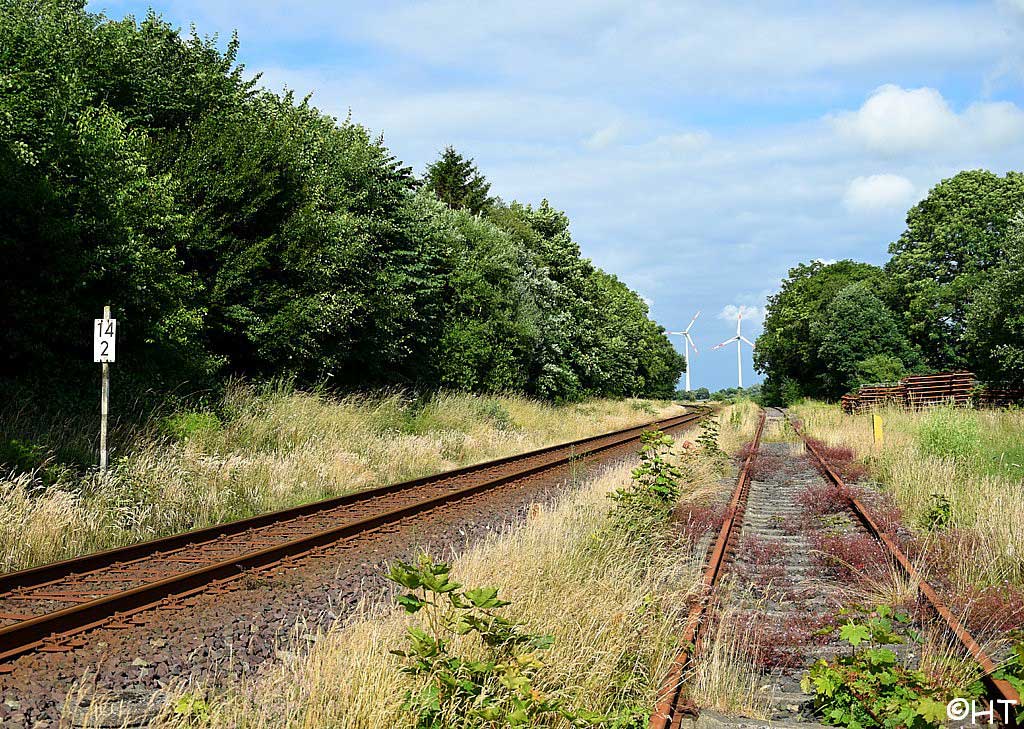 Rechts das Gleis der ehemaligen Strecke Husum 0,0 - Flensburg Weiche 45,50 - Flensburg 48,82