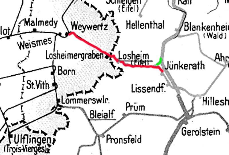 Jünkerath 0,0 - Hallschlag 10,53 - Losheim (Kr Malmedy) 16,30 - Weywertz 38,27