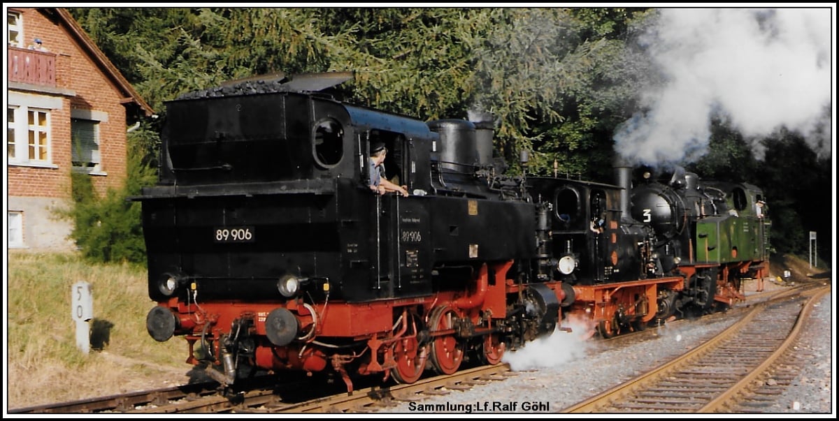 Ex Lok 6 hier als 89 906 ausgeschildert, dann der kleine B- Koppler „Alfred“ in der Mitte und noch die Lok 3 zum Schluss