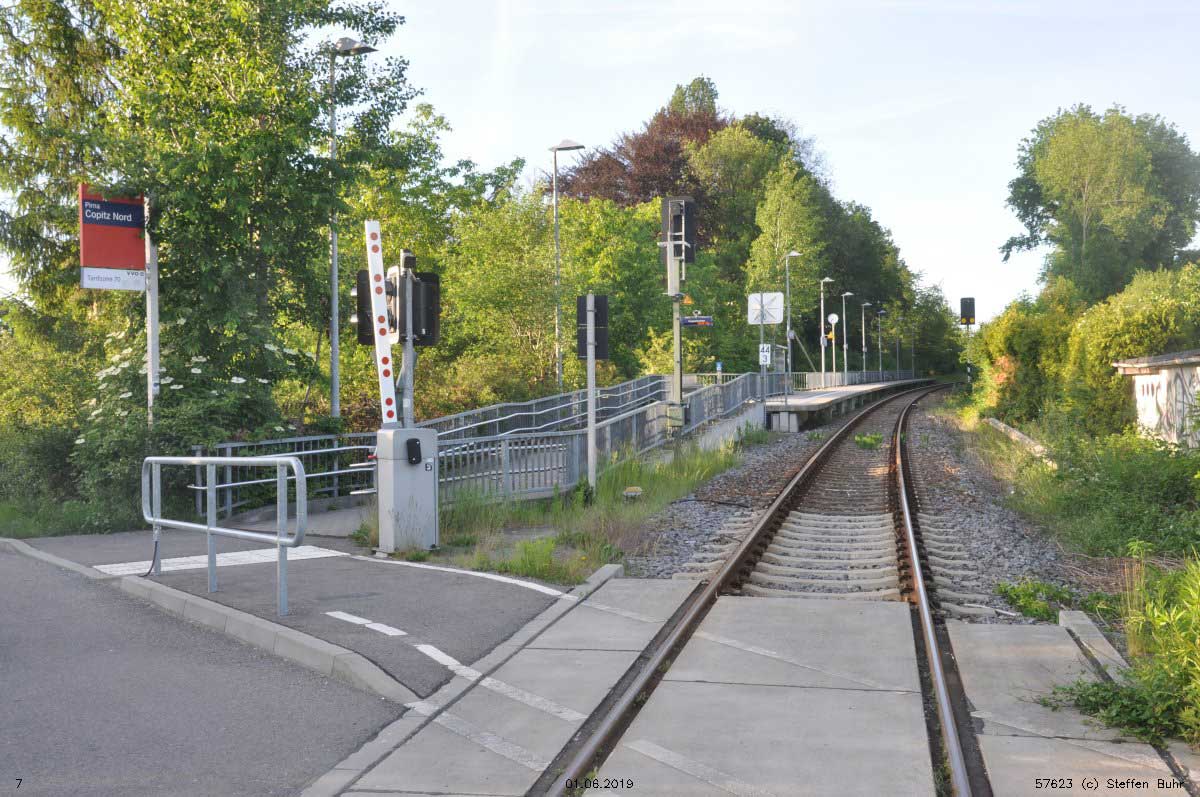 km 0,0 der S-Bahnstrecke Pirna 0,0 - Dresden Hbf 17,55 - Dresden-Neustadt 20,89 - Coswig (b Dresaden) 35,0 (6239)