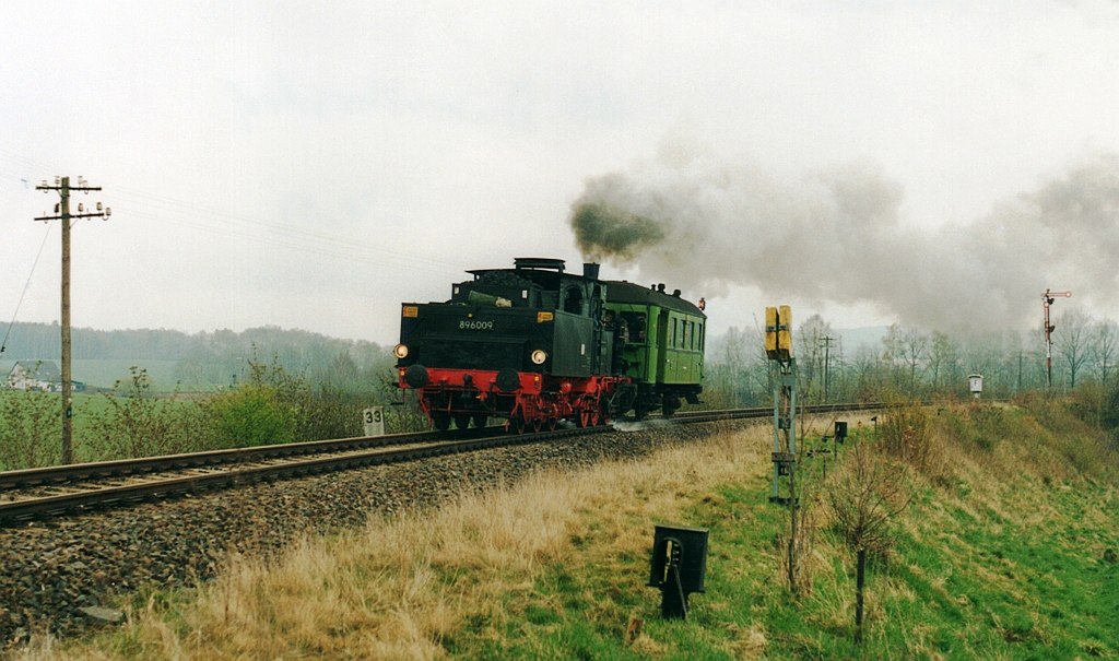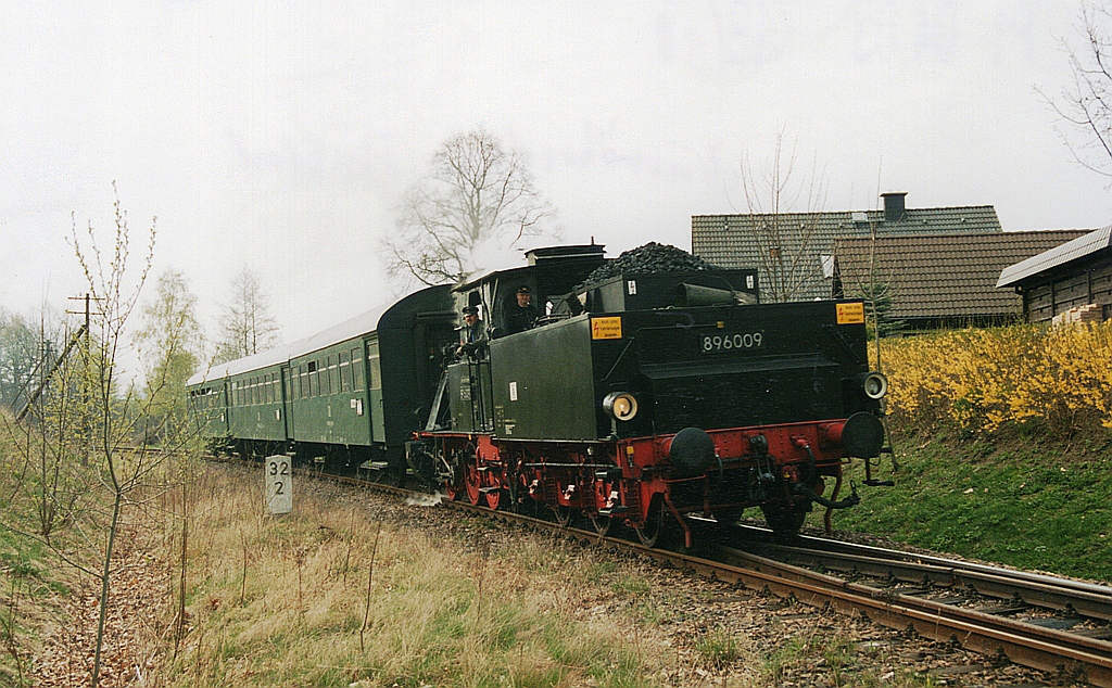89 6009 am km 32,2 zwischen Arnsdorf (b Dresden) und Dürrrrohrsdorf  - Lokführerschulungsfahrten am 26.04.2003