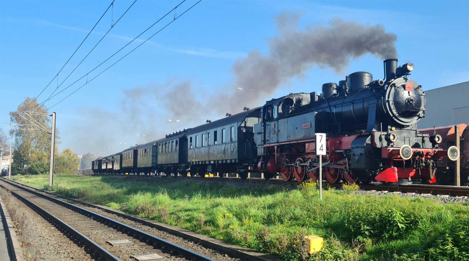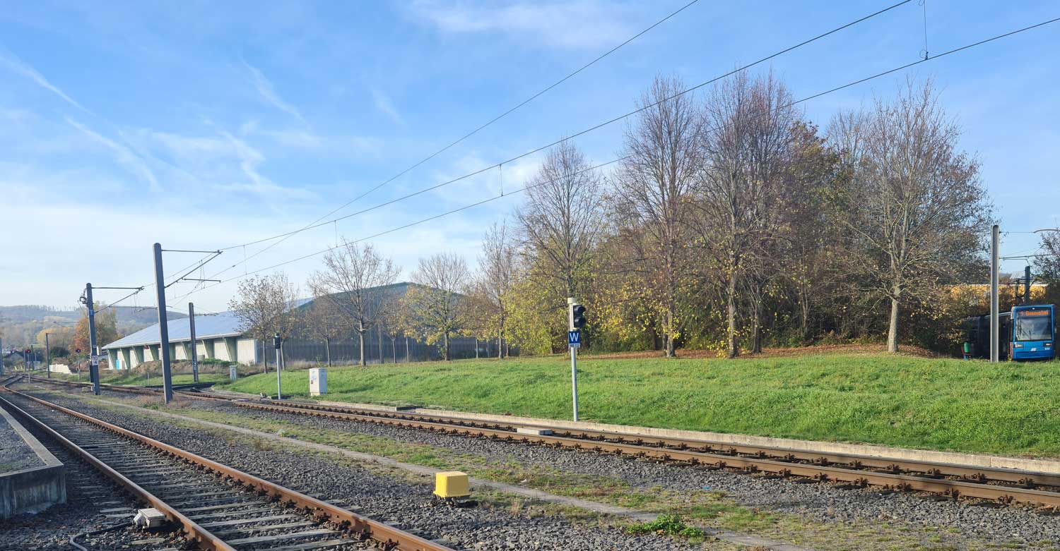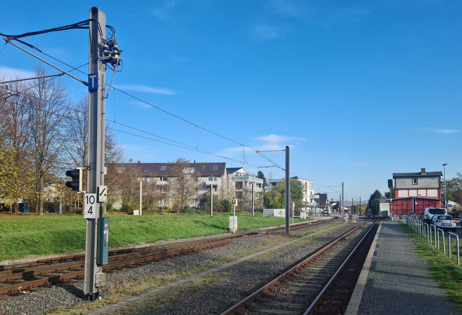 Bahnhofs Baunatal in die Eisenbahntrasse ein und