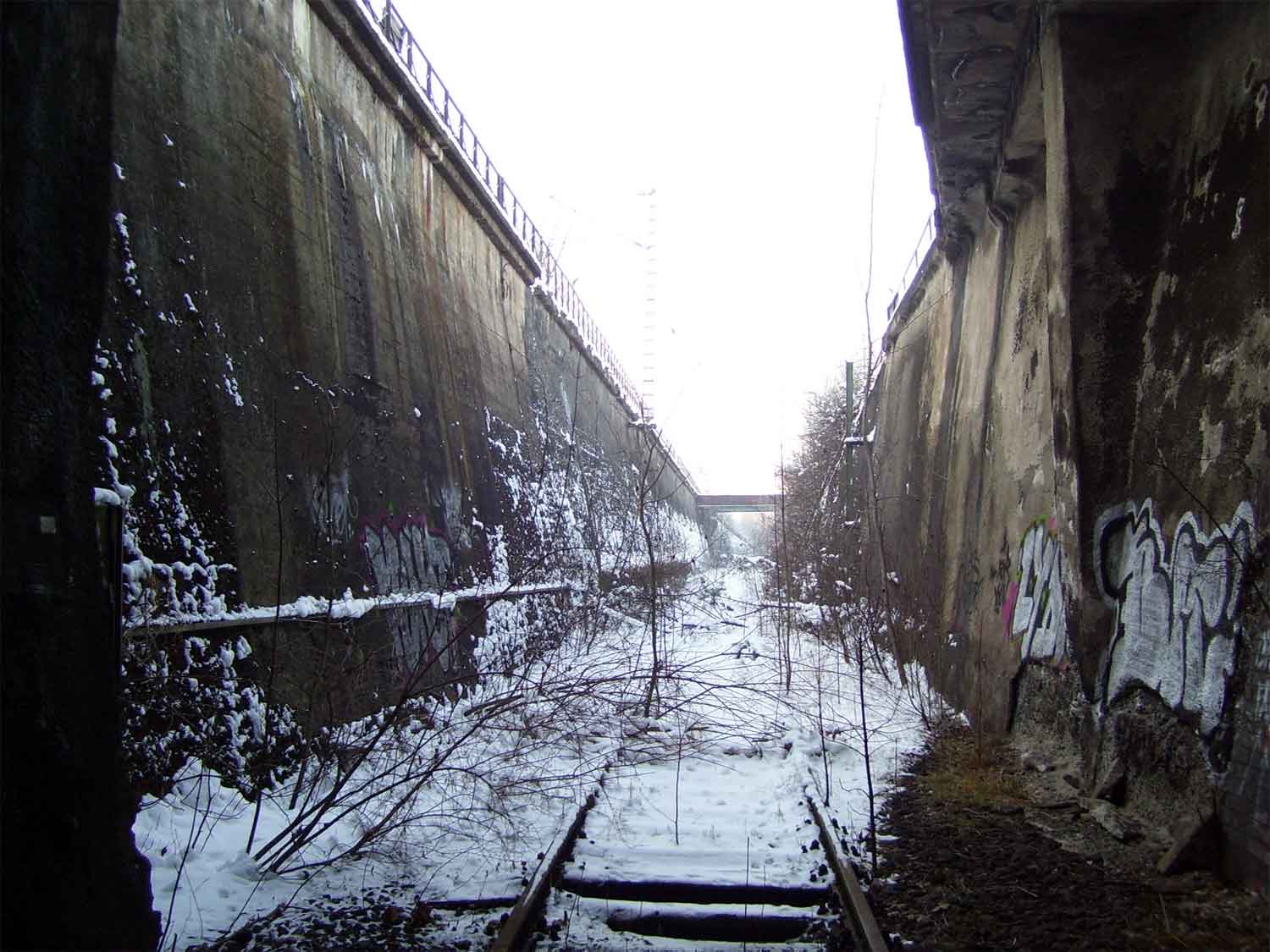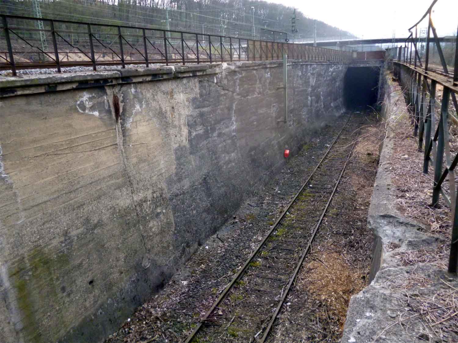 Blick zum Abzw Tunnelgleis Die Weiche befand sich unmittelbar