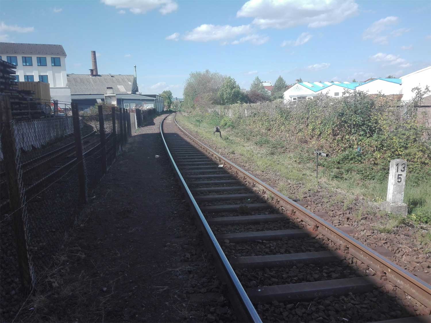 km 13,0 zwischen Kassel-Bettenhausen und Kaufungen Papierfabrik - Blick Richtung Kassel
