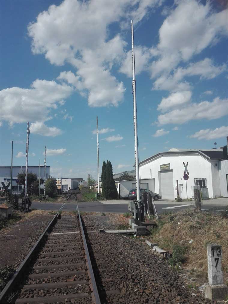 Rechts das Überwachungssignal für den BÜ km 18,4