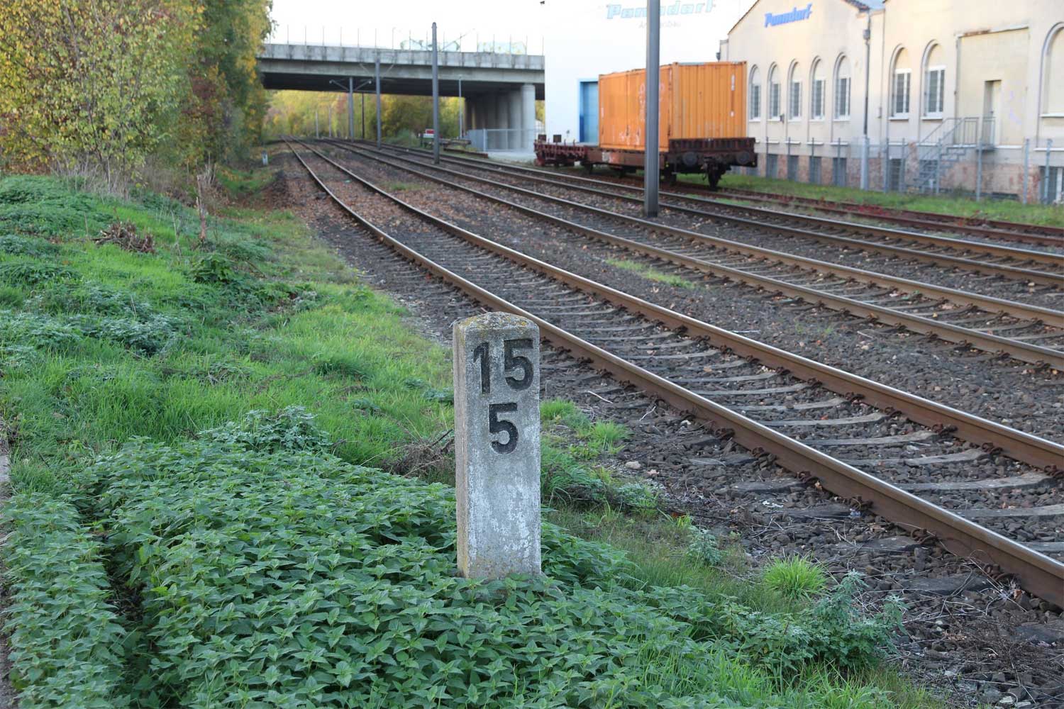 Im Hintergrund der BÜ km 18,92