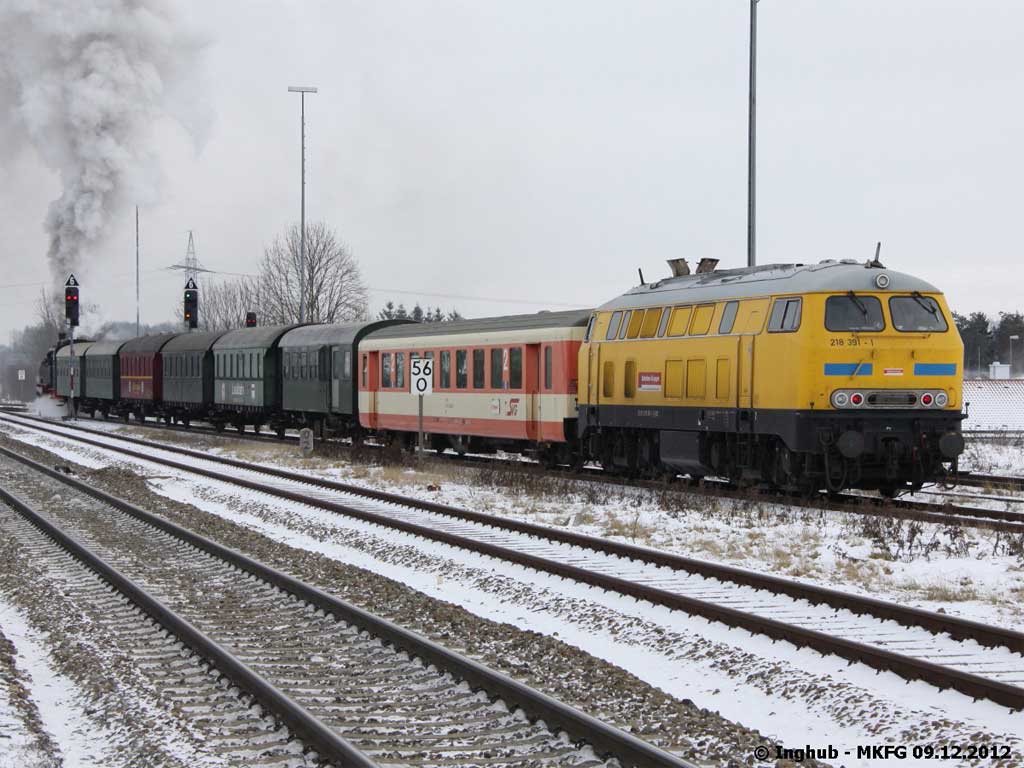 km 0,2 und km 56,0 in Kaufering - 75 1118 der UEF mit Sonderzug Augsburg - Landsberg(Lech) - 218 391-1 am Zugschluss