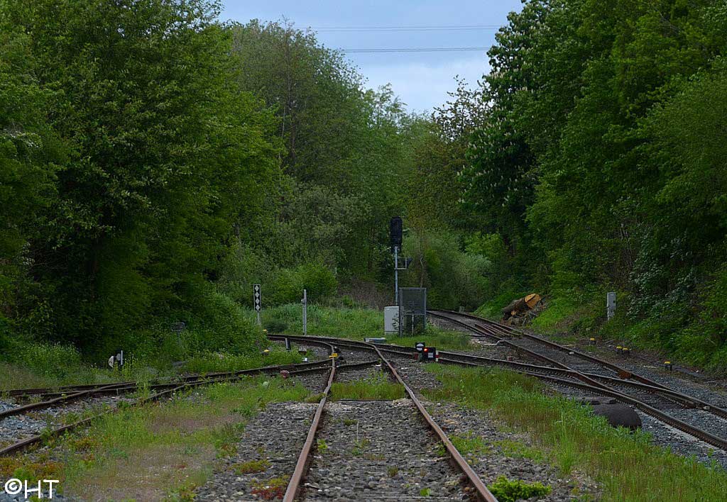 Nach links abgehend die Strecke Abzw Kiel-Oppendorf 0,0 - Ostuferhafen 3,7/Gemeinschaftskraftwerk 2,9