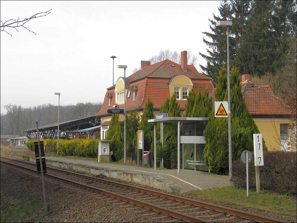 Klostermansfeld | 0,00 | km 179,01 der Strecke Berlin-Charlottenburg 0,0 (später: -0,12) - Wiesenburg (Mark) 77,83 - Güsten 147,33 - Blankenheim Trennungsbf 188,09 |