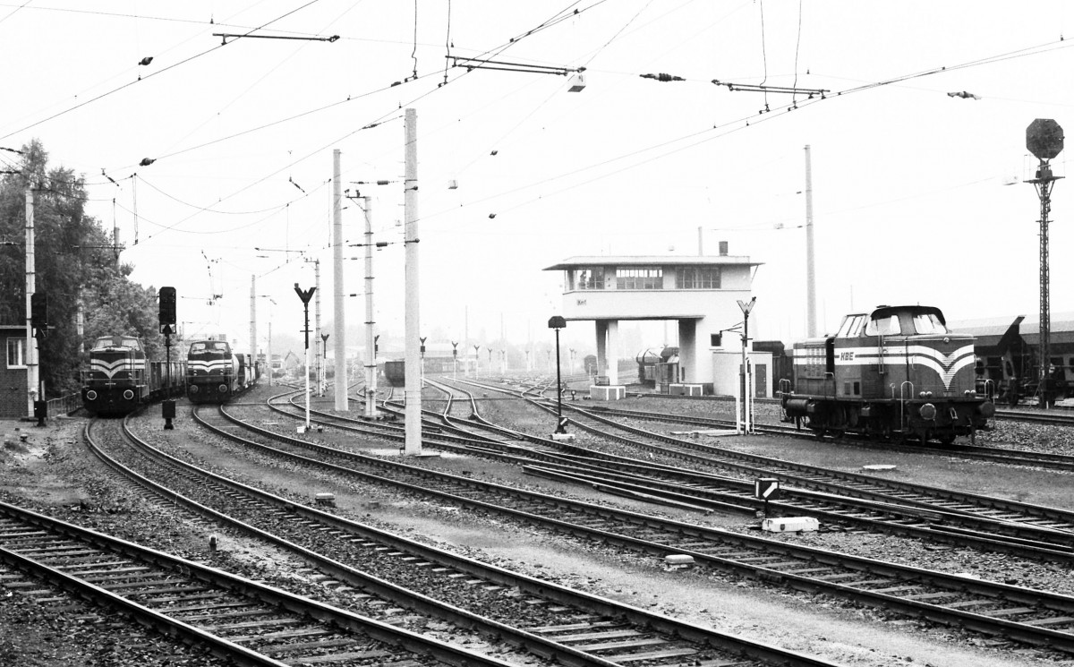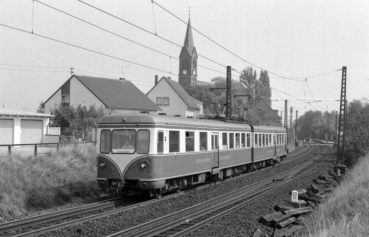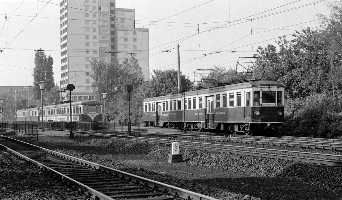Links die ET 54 und 42 auf der Vorgebirgsbahn, rechts der ET 31 zur Fahrt nach Wesseling (KBE-Querbahn)