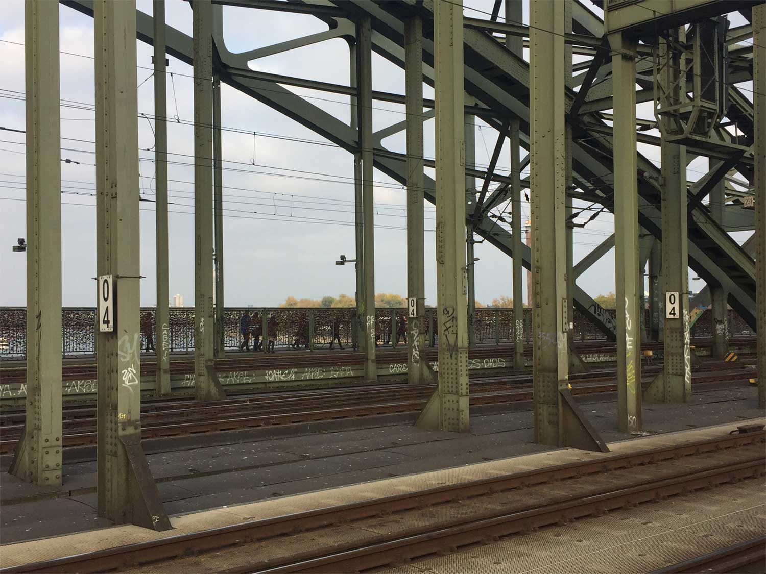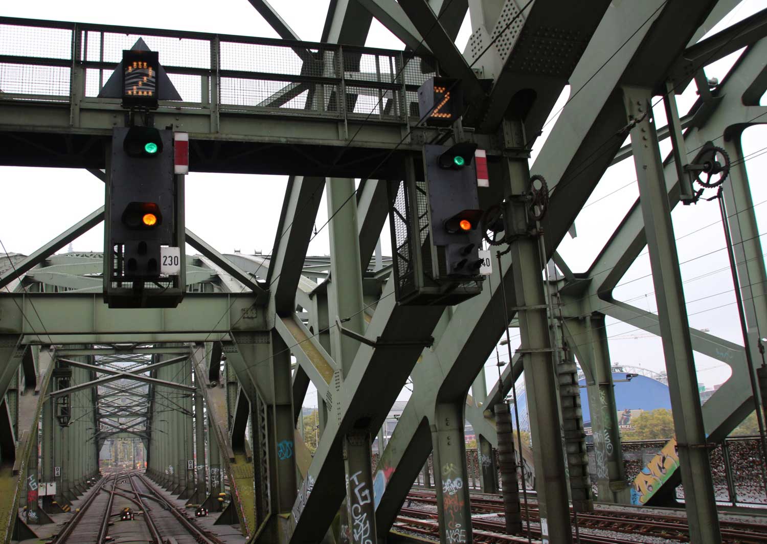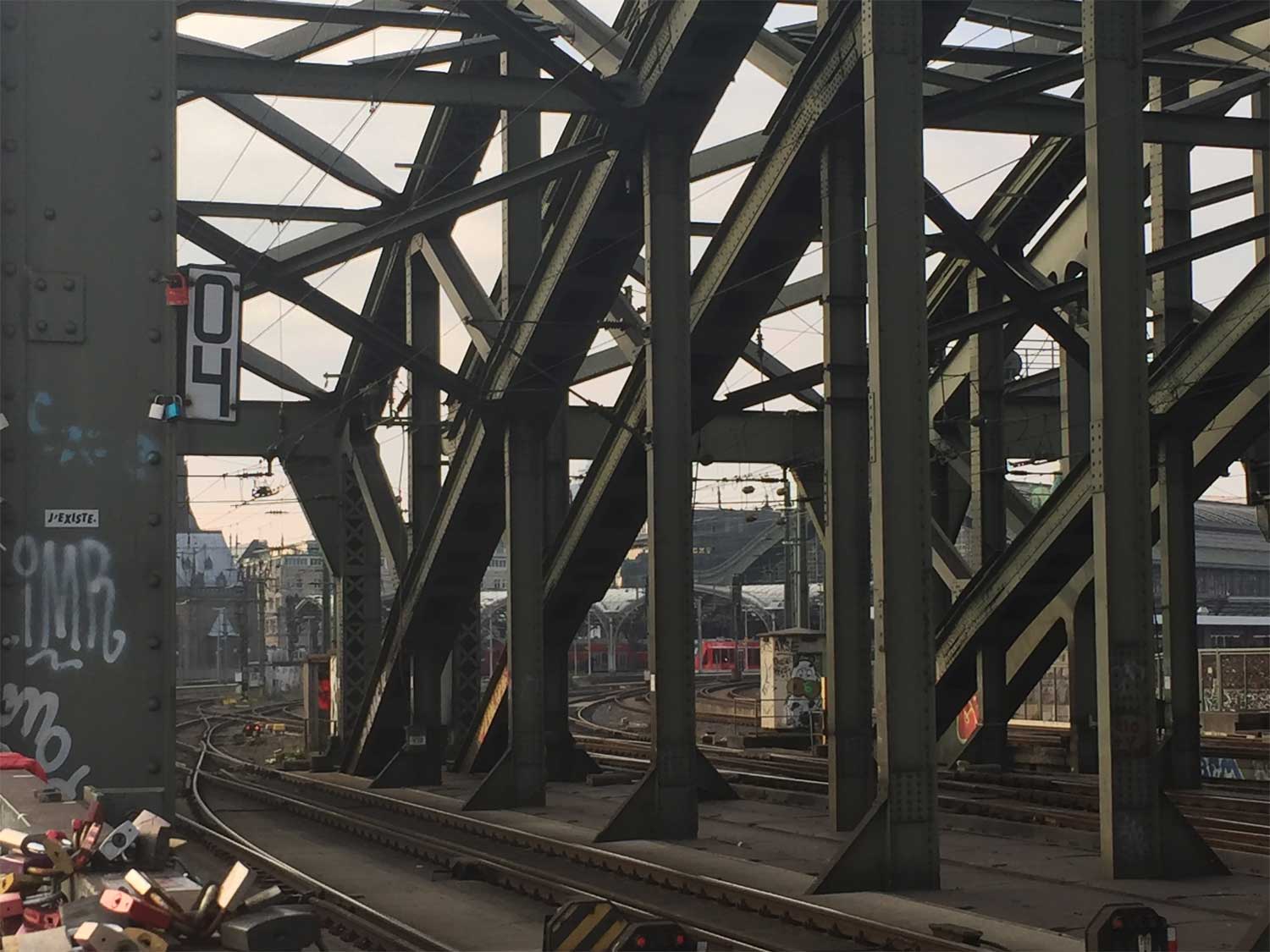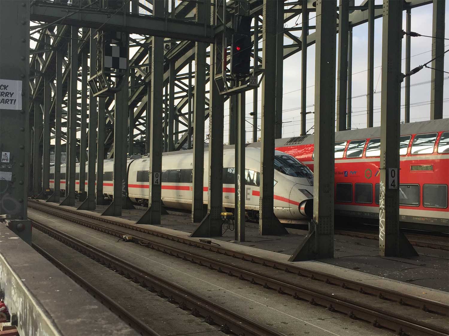 km 0,6 auf der Hohenzollernbrücke - Blick Richtung Köln Hbf