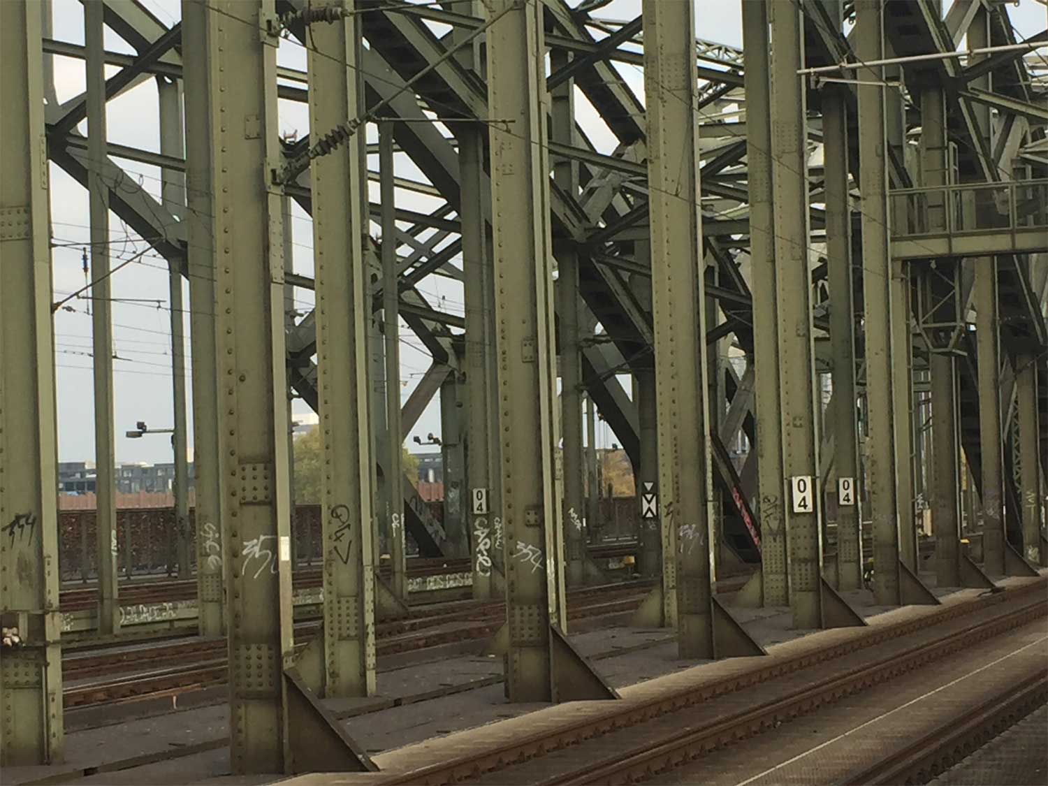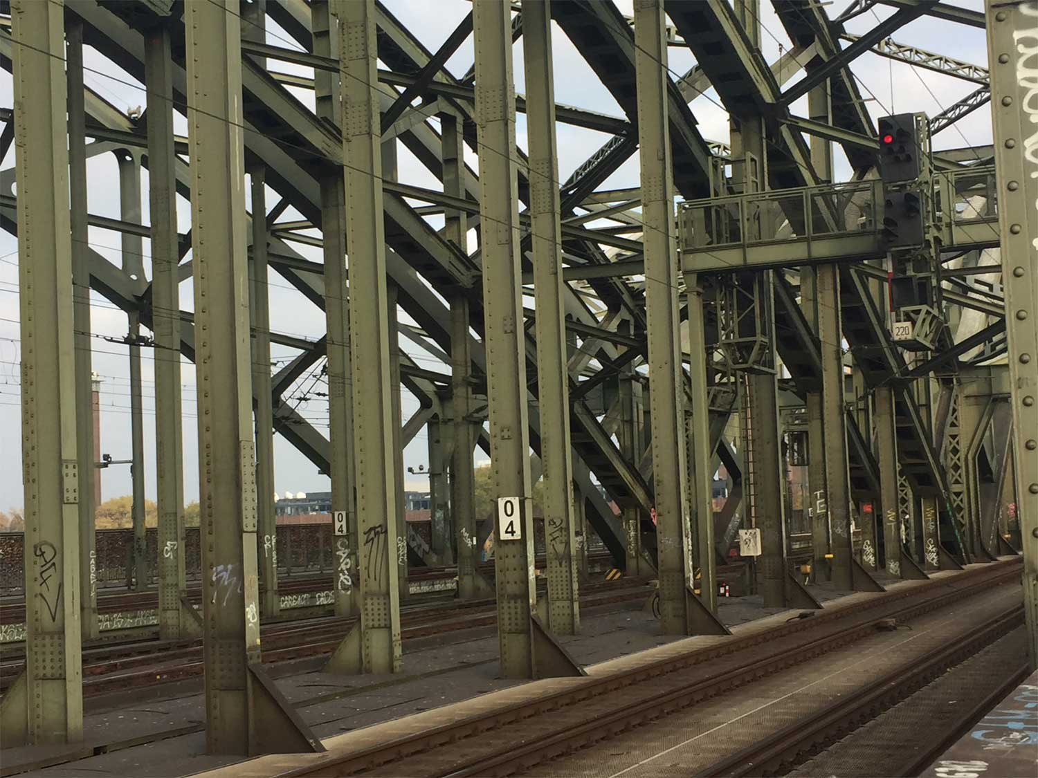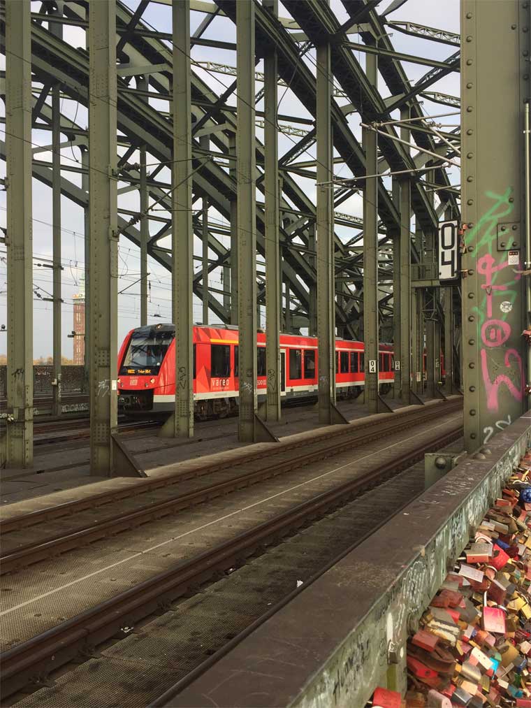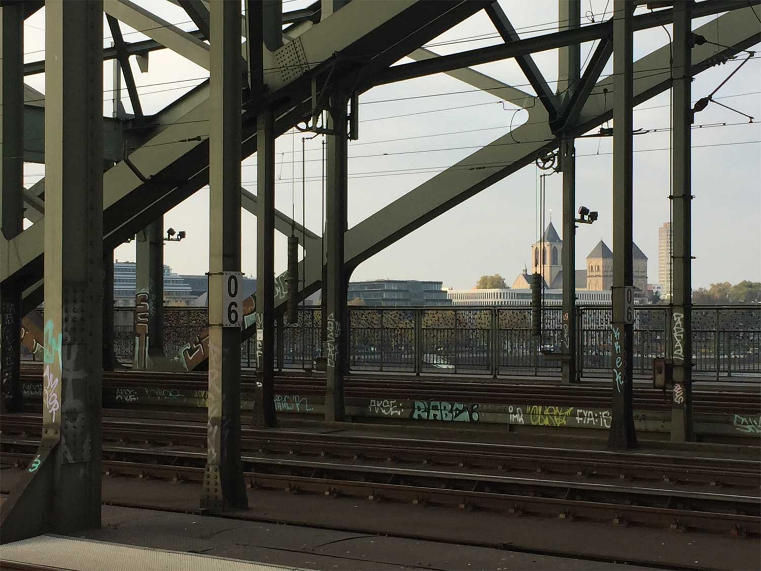 km 0,6 auf der Hohenzollernbrücke - Blick Richtung Köln Hbf